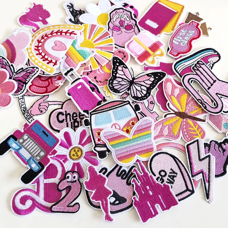 50 patchs brodés rouge & rose