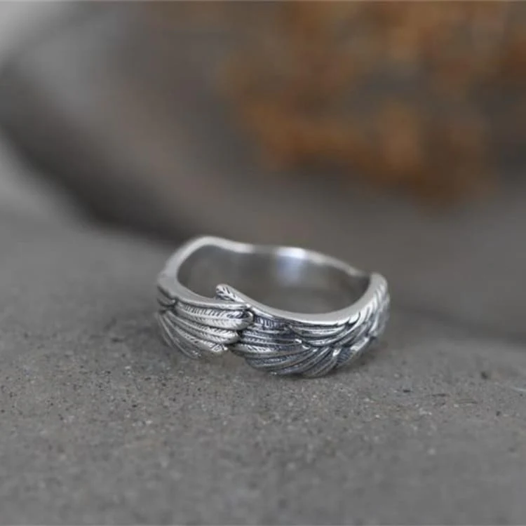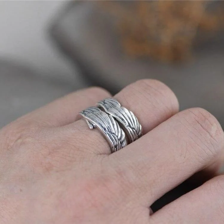 Cet Anneau « Plume de gardien ailé ». Elle est entièrement ajustable pour s’adapter à la taille de votre doigt, vous n’avez donc pas à vous soucier de la taille.