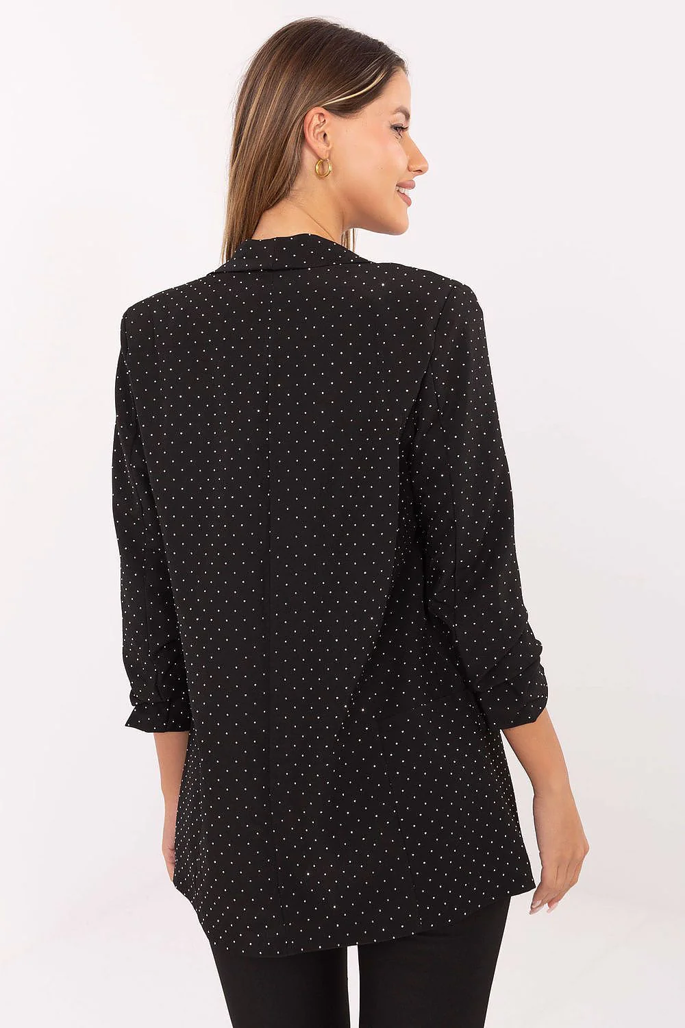 Manches 3/4 Orné de strass Fausse poches Col tailleur Épaulettes