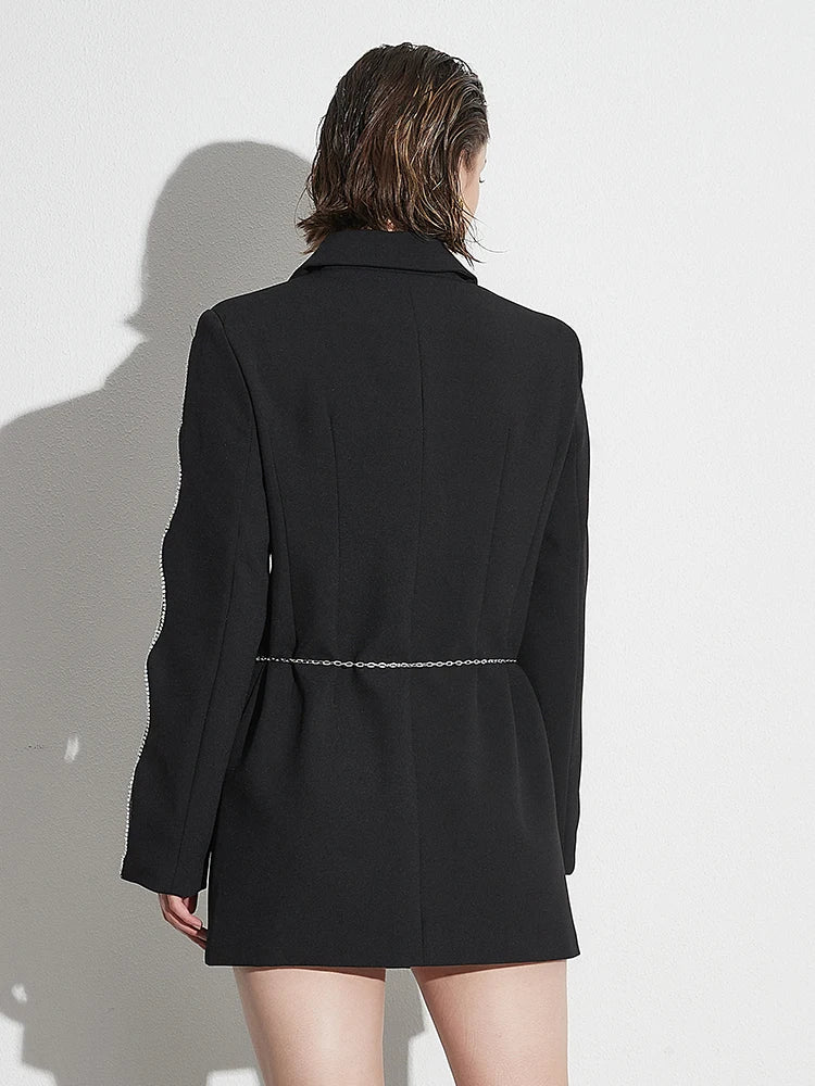 BLAZER NOIR PERLÉE CEINTURE CHAîNE INTÉGRÉE