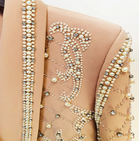 BLAZER ROSE CLAIR ORNÉE DE PERLES