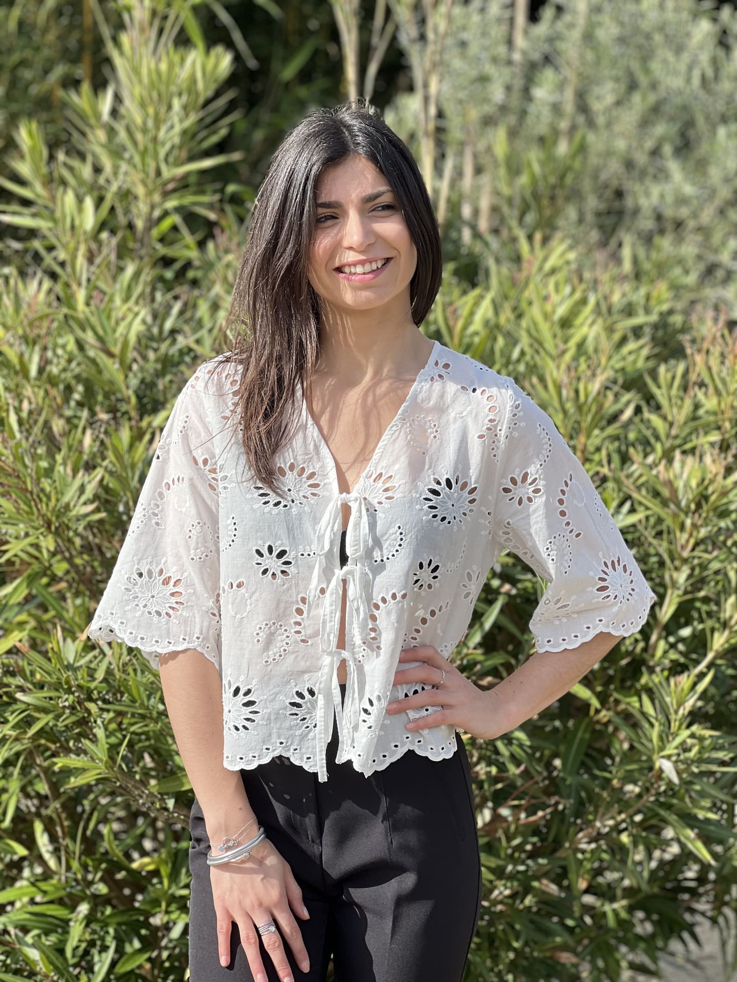 BLOUSE A CROCHET NŒUDS DEVANT Taille : Justine mesure 1m69. Elle porte la taille unique pour ce modèle. Taille unique Convient de la taille 36 à 42. Composition & entretien : 100% COTON Lavage à la main conseillé Besoin d’un conseil ? Consultez notre foire aux questions ou contactez-nous via notre formulaire de contact