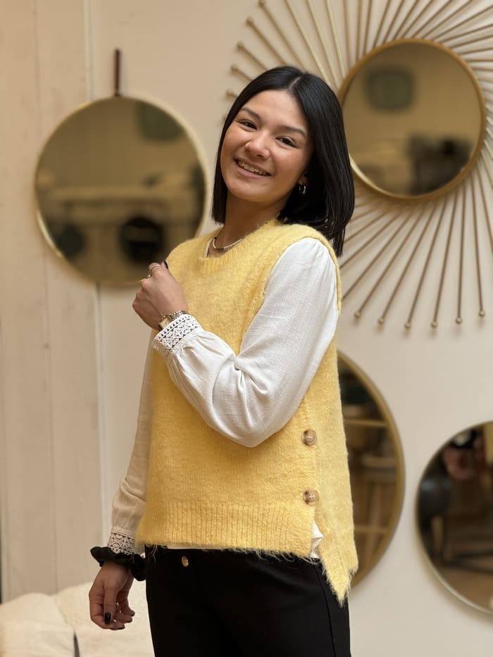 Mathilde mesure 1m65. Elle porte la taille S pour ce modèle.