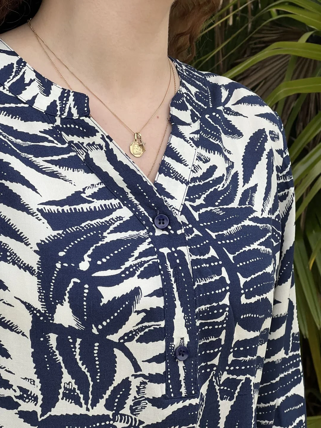 - BLOUSE A ML COL V – IMPRIME FEUILLAGE