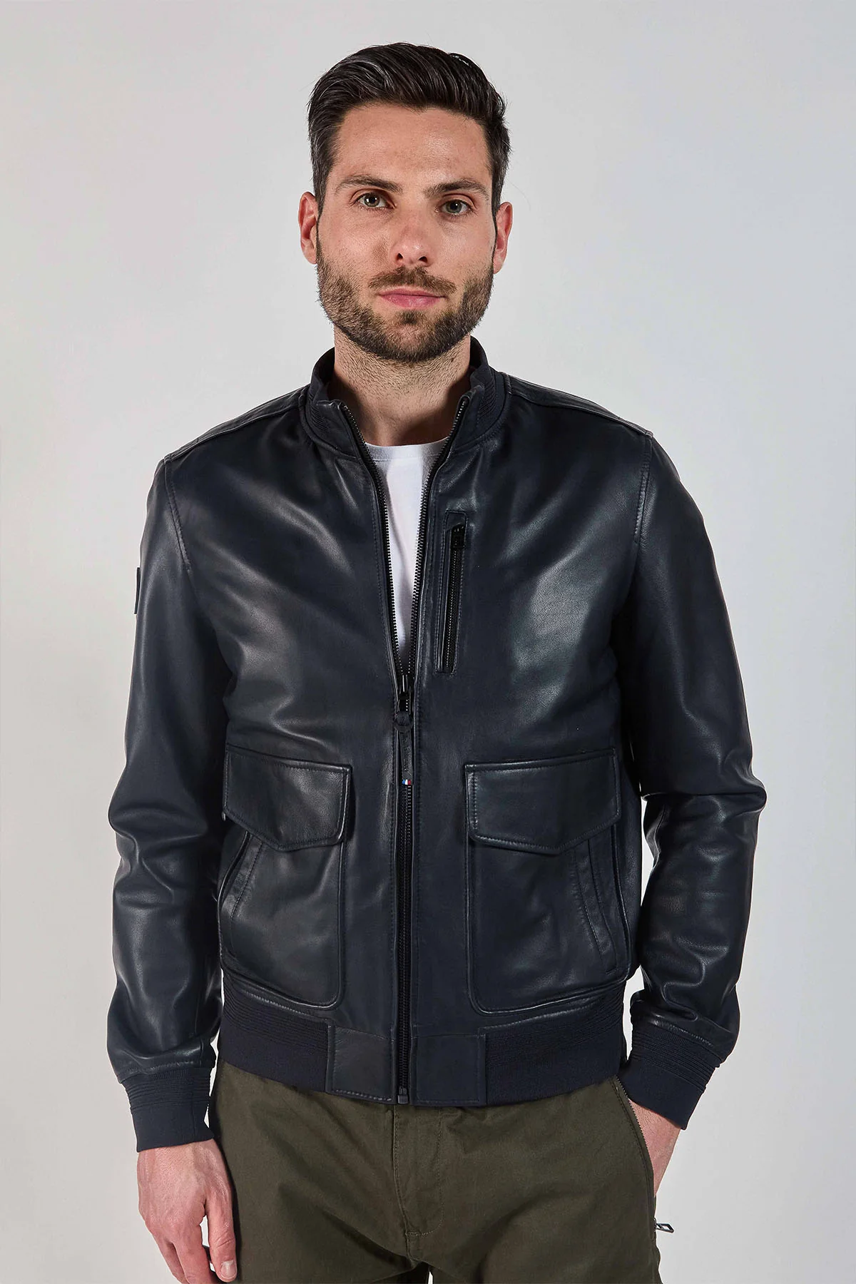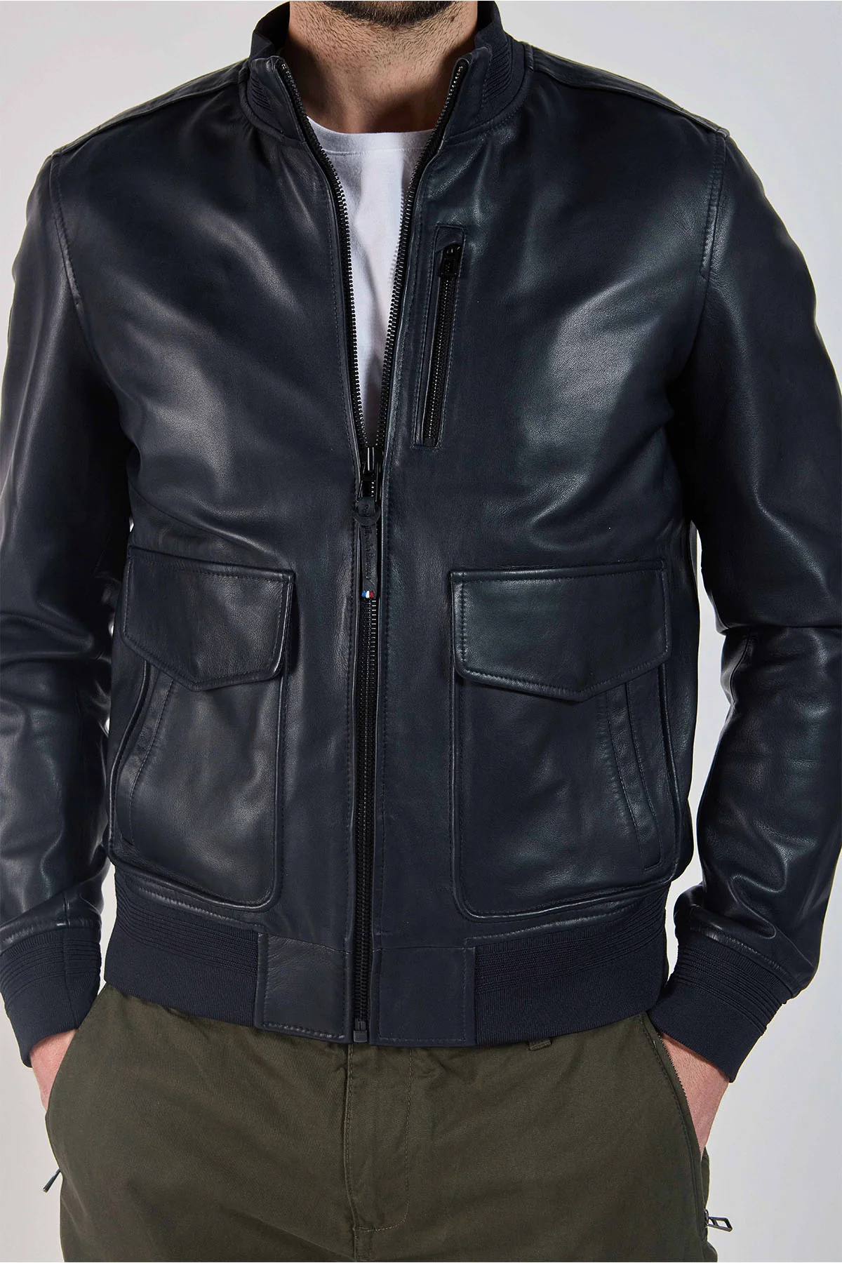 BLOUSON EN CUIR FURTIF NAPOLI navy