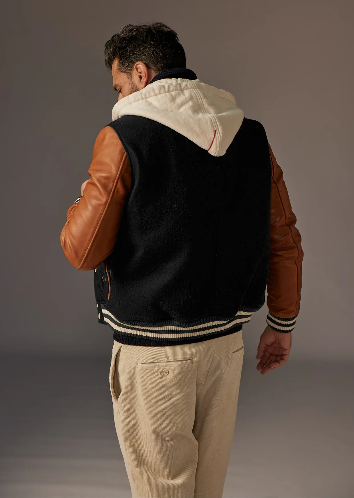 Le blouson en cuir noir CAMBRIDGE SCHOOL est une pièce incontournable qui allie style et confort. Sa conception de type varsity, typique des vêtements de sport et de loisirs, en fait un choix parfait pour une allure moderne et décontractée.