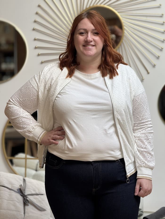 Margaux mesure 1m68. Elle porte la taille 2XL (44) pour ce modèle.