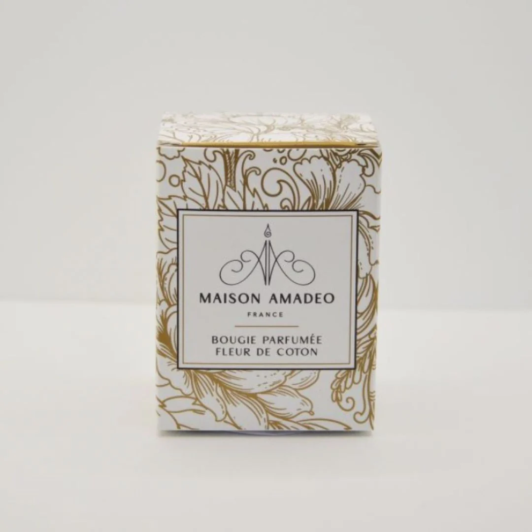 Bougie Parfumée Fleur de coton fabriquée en France et expédiée par MAISON AMADEO.