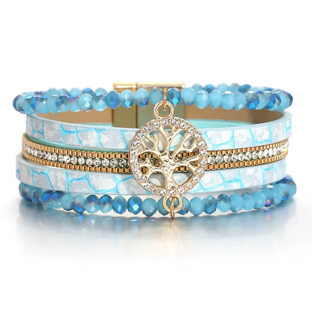 Apportez une touche de brillance à votre quotidien avec notre bracelet arbre de vie brillant et moderne. Ce bracelet arbre de vie, confectionné en alliage de zinc, simili cuir et strass, affiche une éclatante couleur qui capte l’œil. Chaque détail a été pensé pour refléter un style chic.
