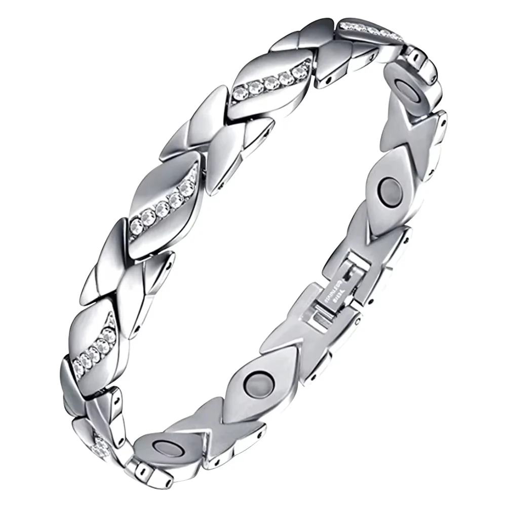 Le bracelet femme – magnétique à strass est l’expression parfaite de la féminité moderne. Ce bracelet femme allie la brillance délicate des strass à la puissance du cuivre magnétique. Sa couleur argentée ou dorée met en valeur chaque poignet, tout en apportant une touche de luxe.