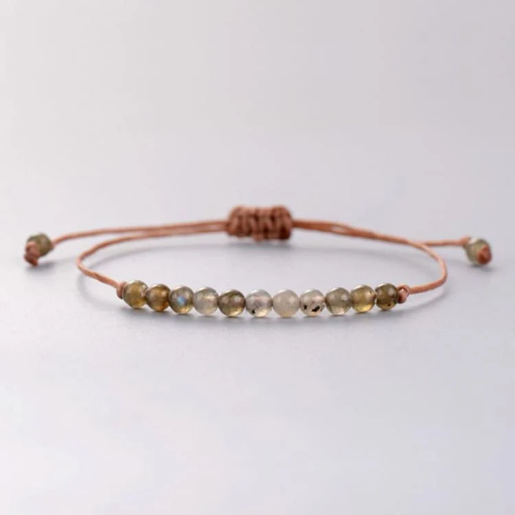 Découvrez ce magnifique bracelet ajustable orné de fines perles de Labradorite, laissez-vous envahir par ses couleurs chatoyantes.
