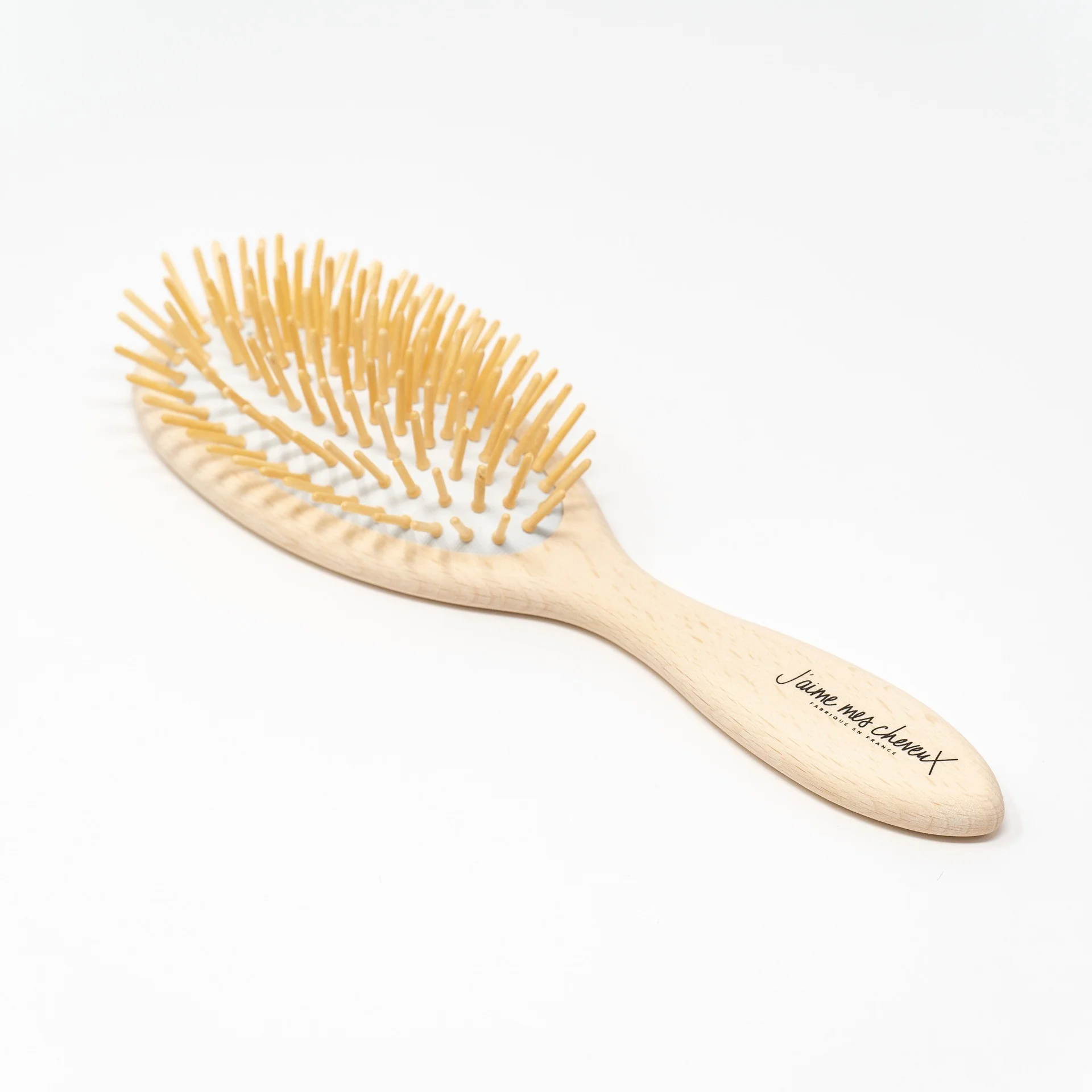 Cette brosse démêlante en bois de Hêtre naturel sera la meilleure amie de vos cheveux ! Nous vous garantissons de doux brossages, massant et agréable, grâce aux picots en bois de la brosse qui favorise notamment la circulation sanguine du cuir chevelu.