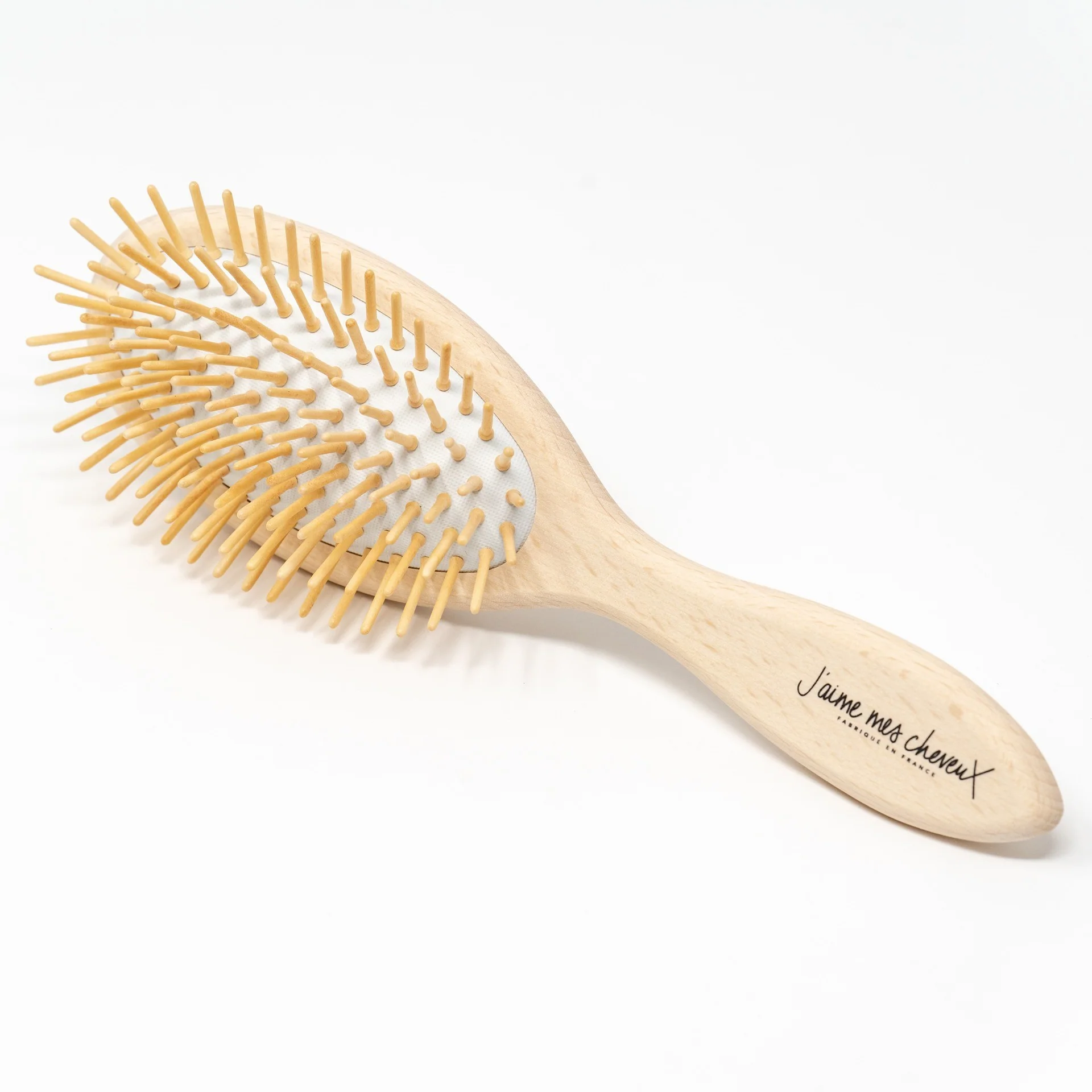 Brosse à cheveux en bois fabriquée en France par API MANI.
