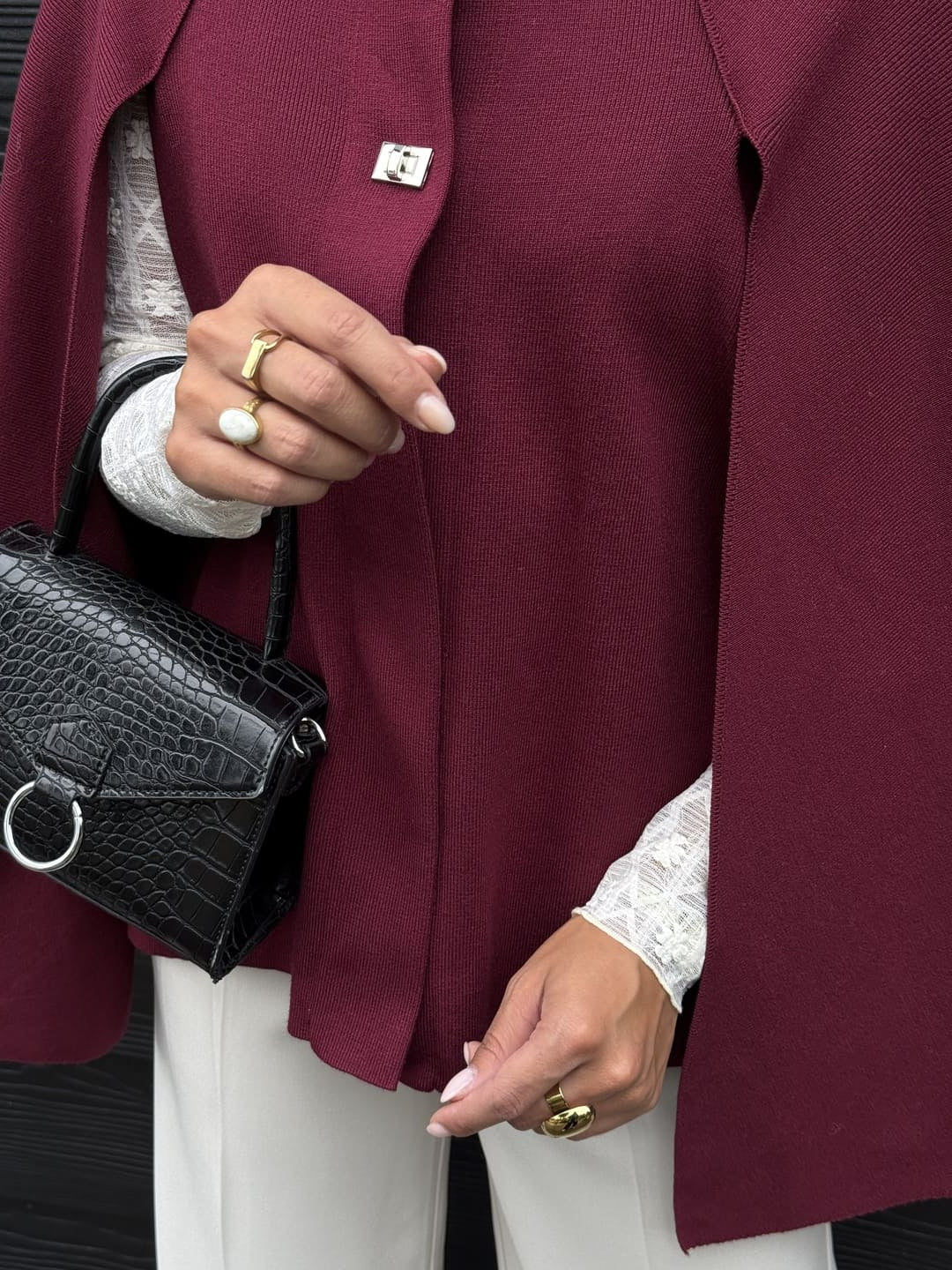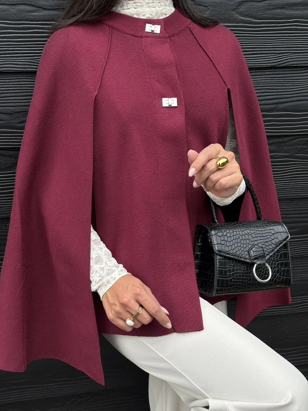 - Cape col rond avec 2 boutons argent