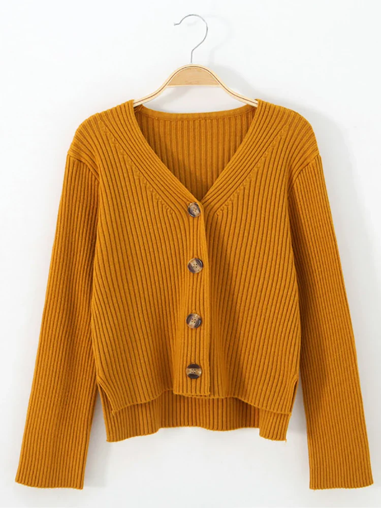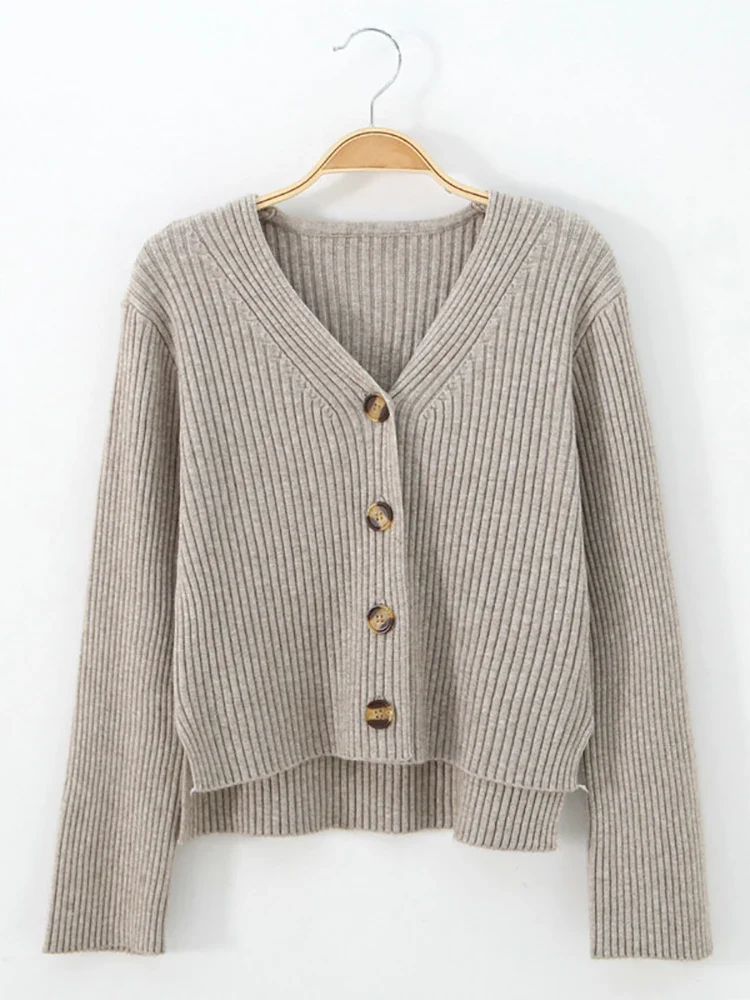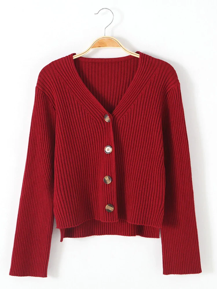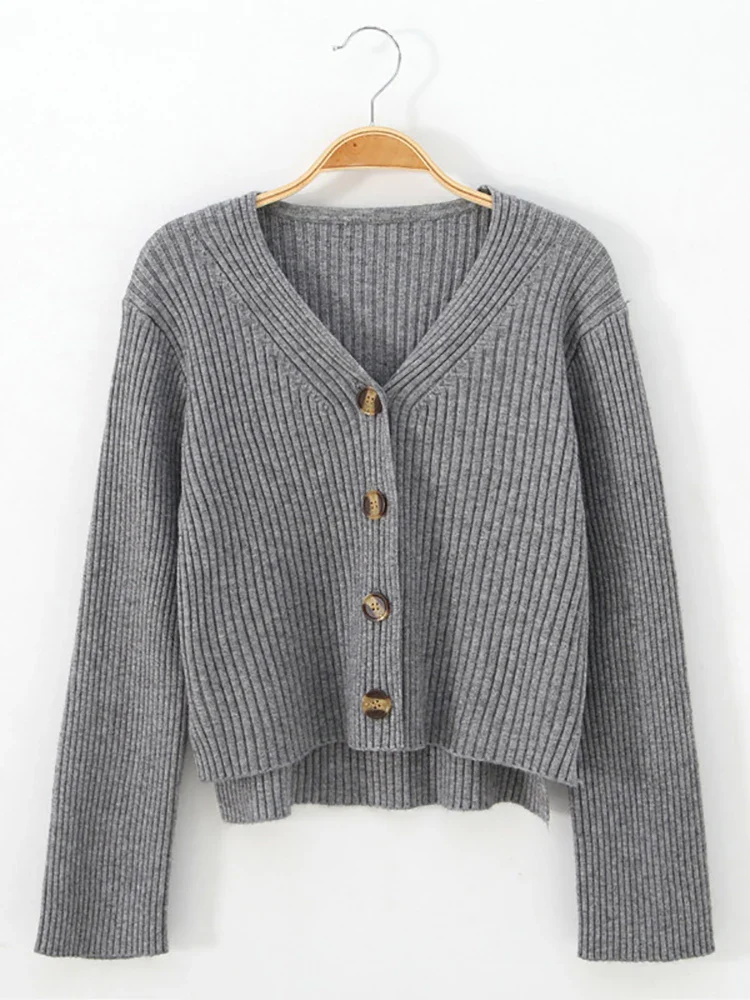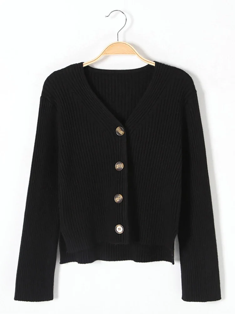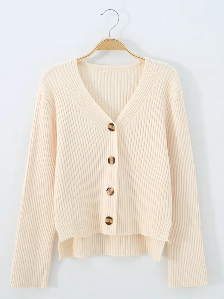 Cardigan en tricot Manches longues Boutonné Col V Elasticité élevé Taille unique