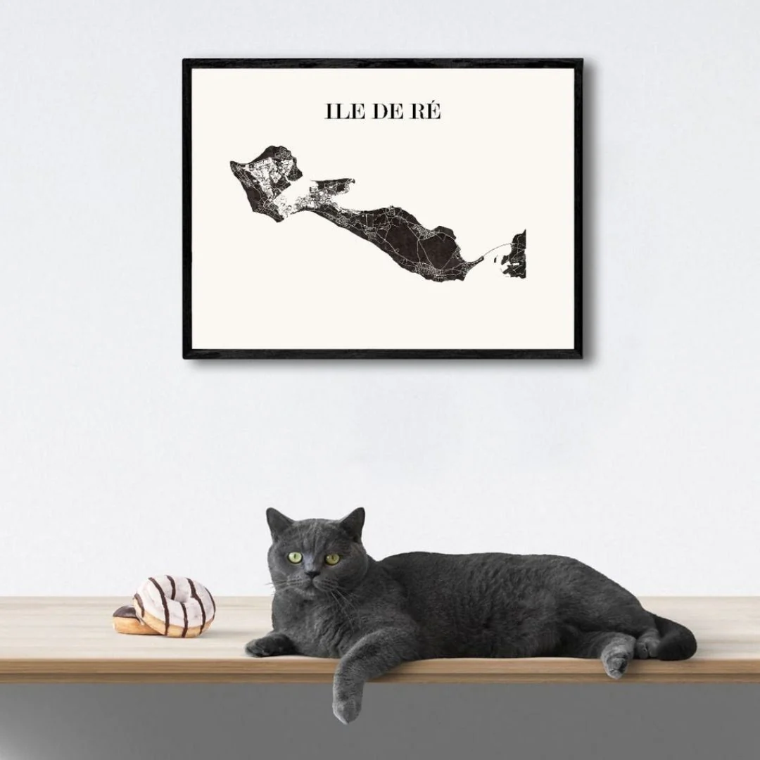 Carte Design de l’Île de Ré et son cadre en bois noir