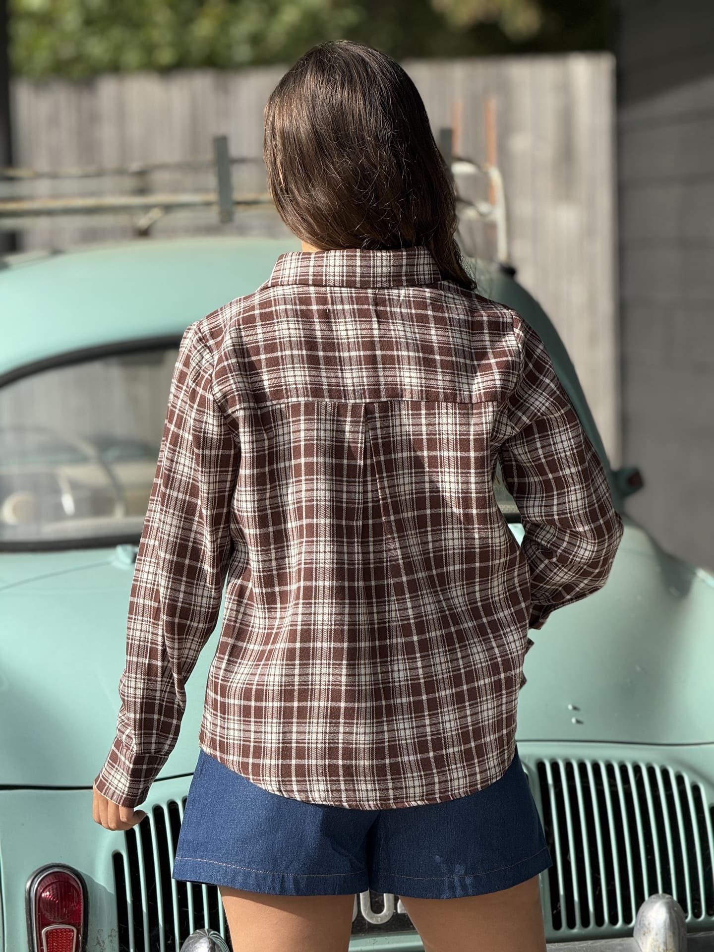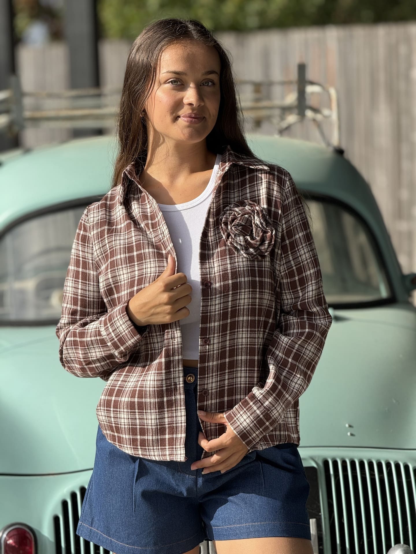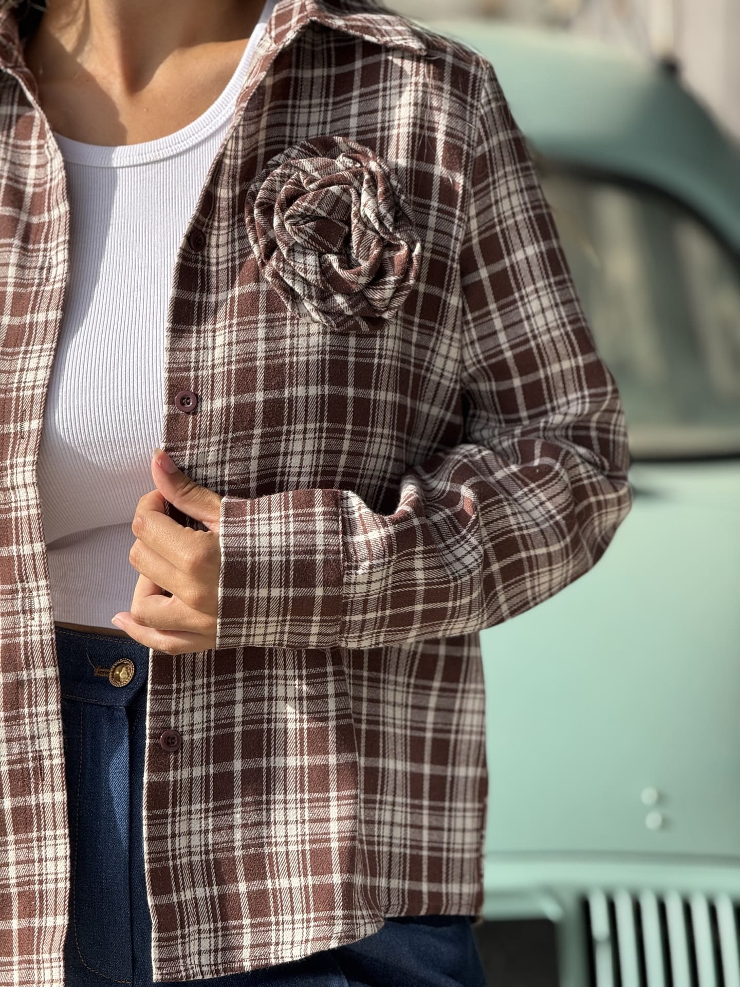 - CHEMISE à ml à carreaux avec fleur sur poitrine