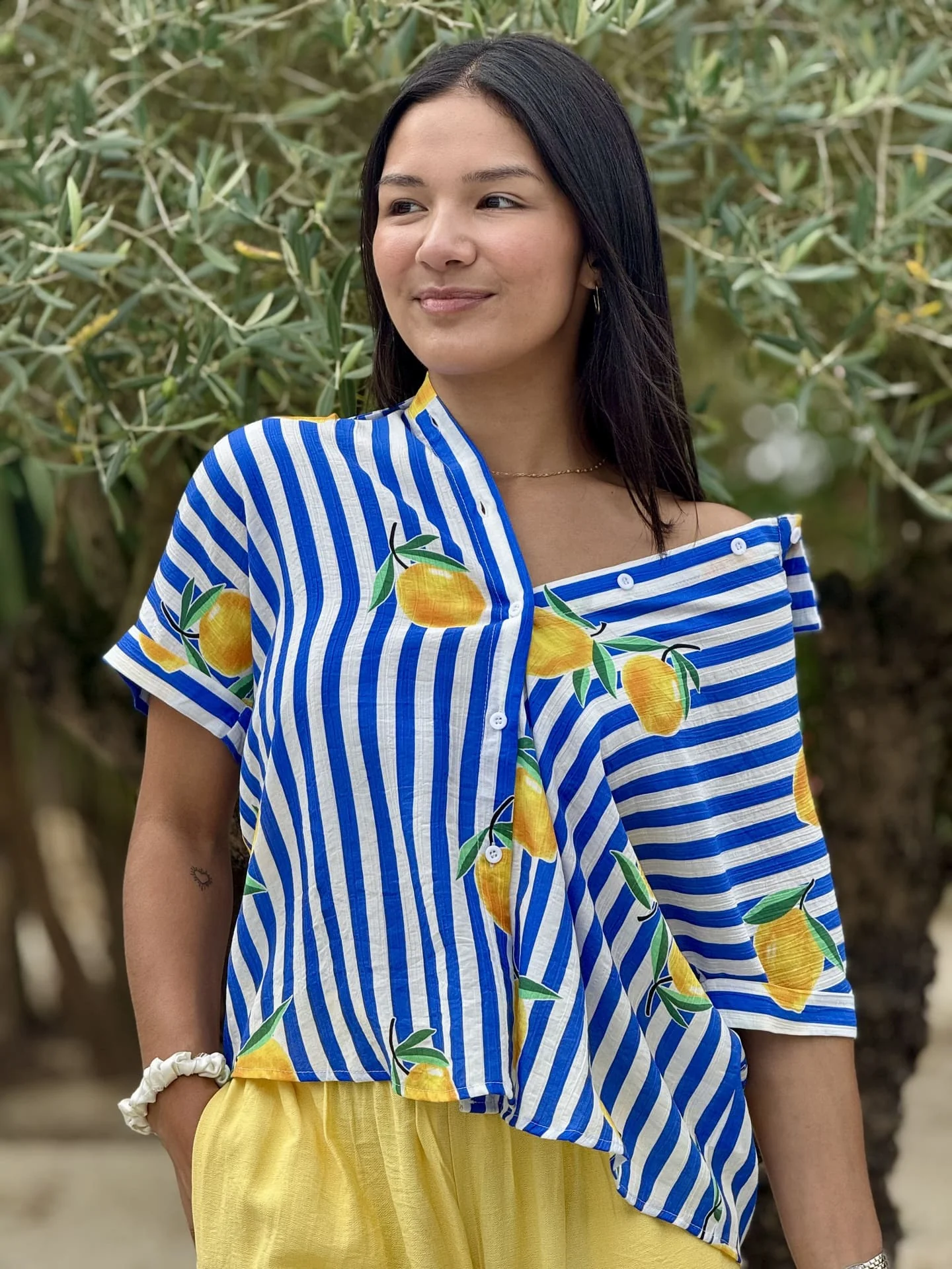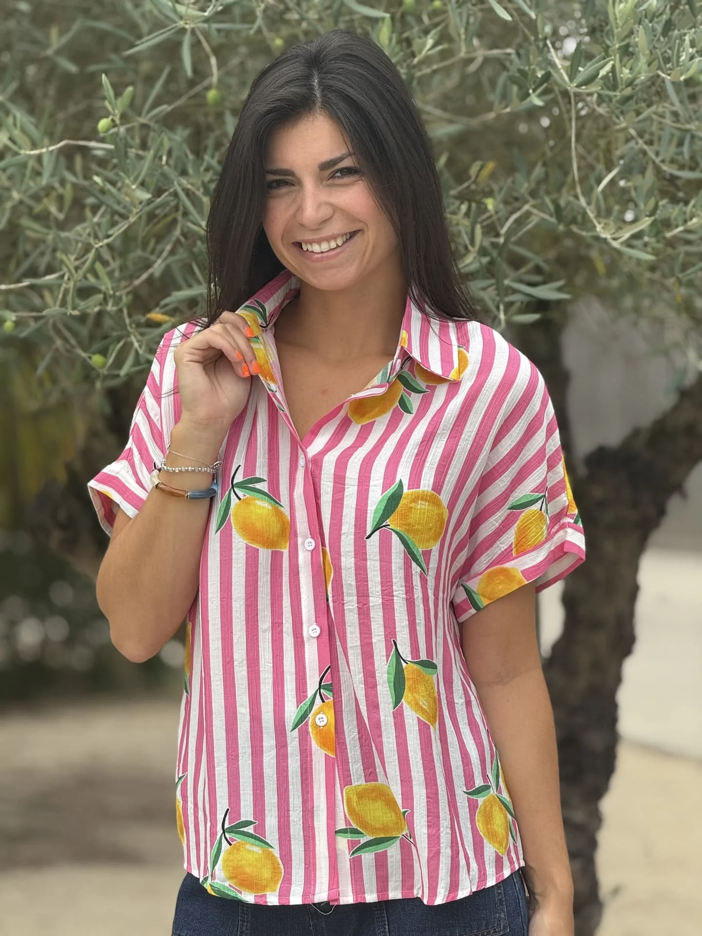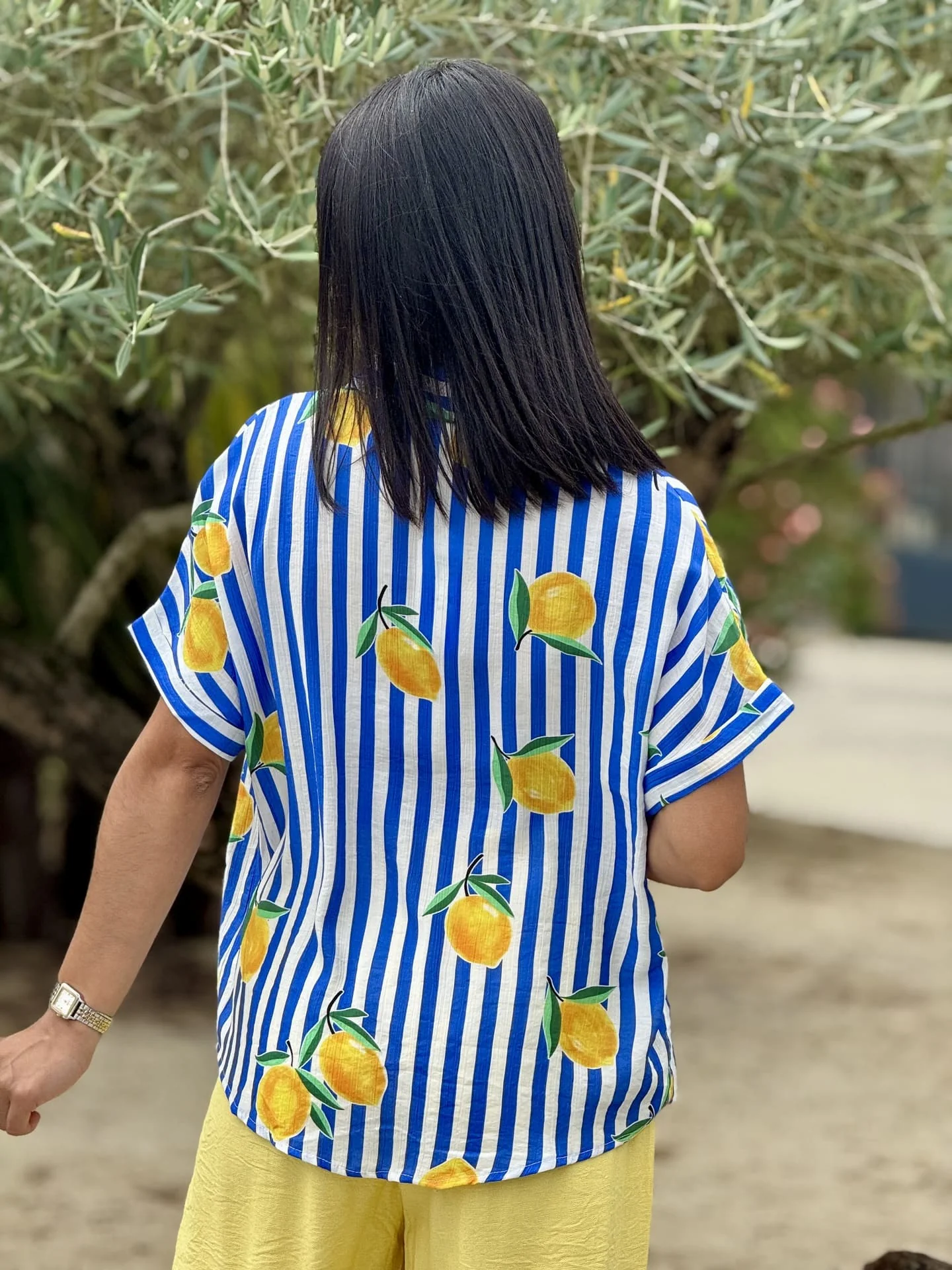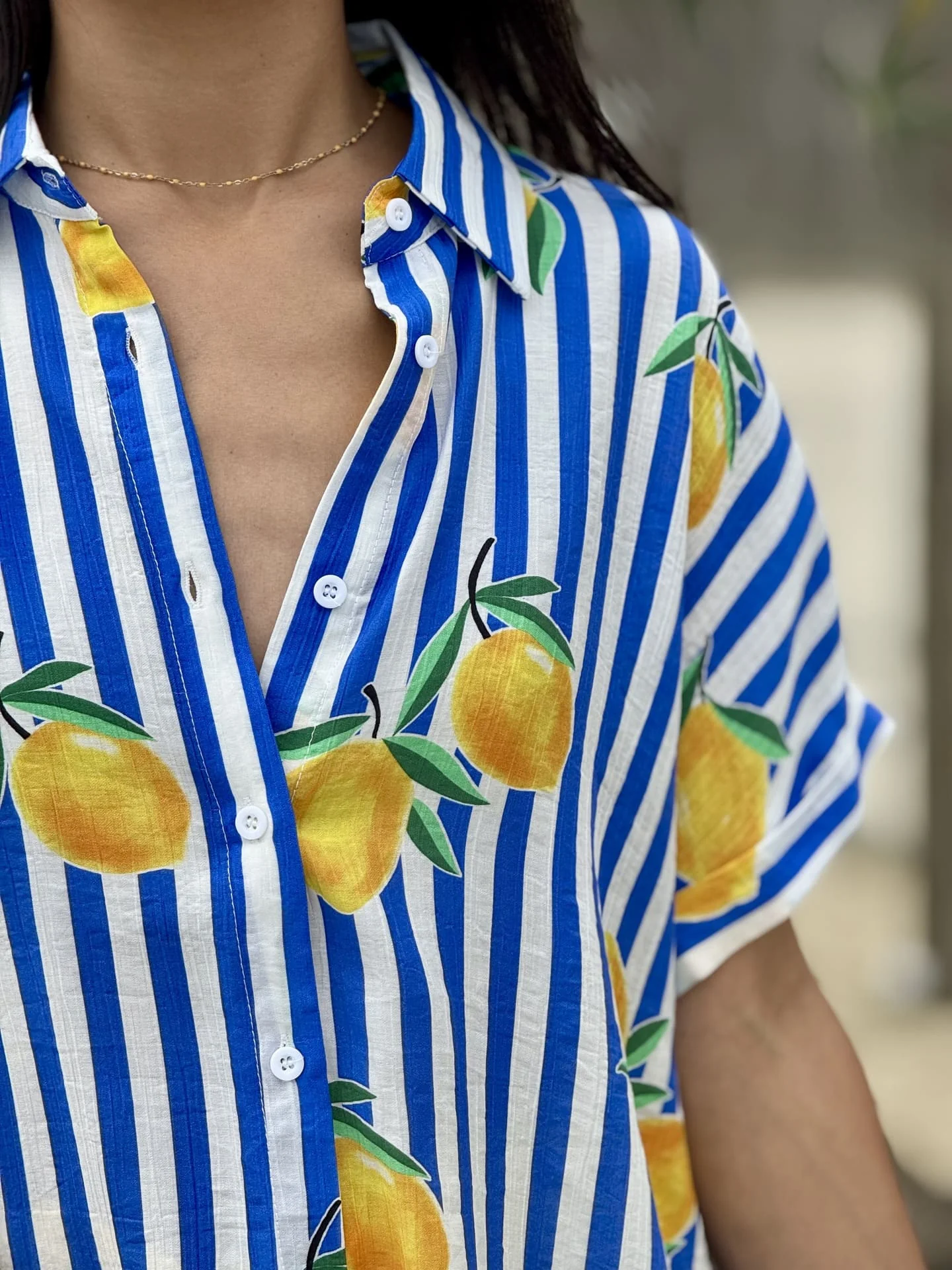 - Chemise à mc imprimé marinière + citrons
