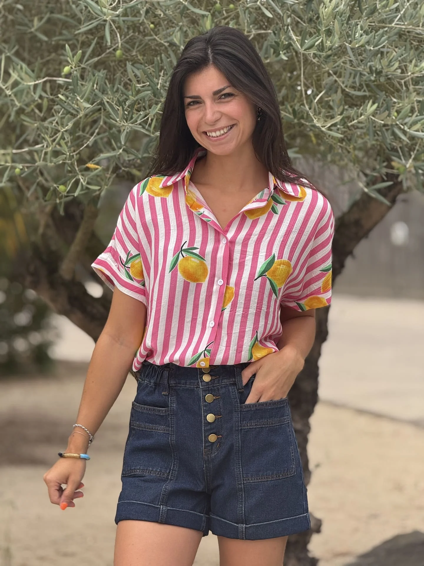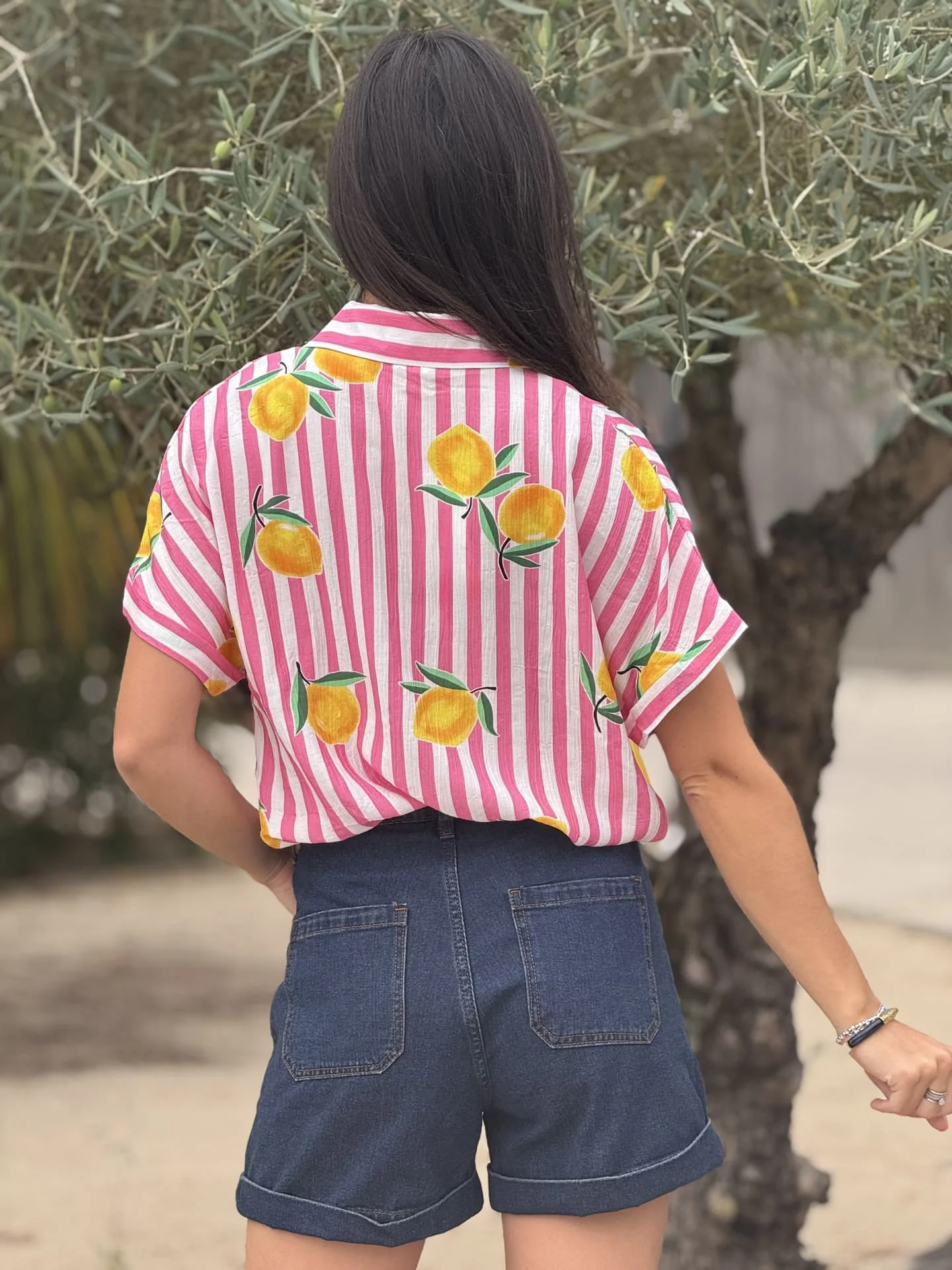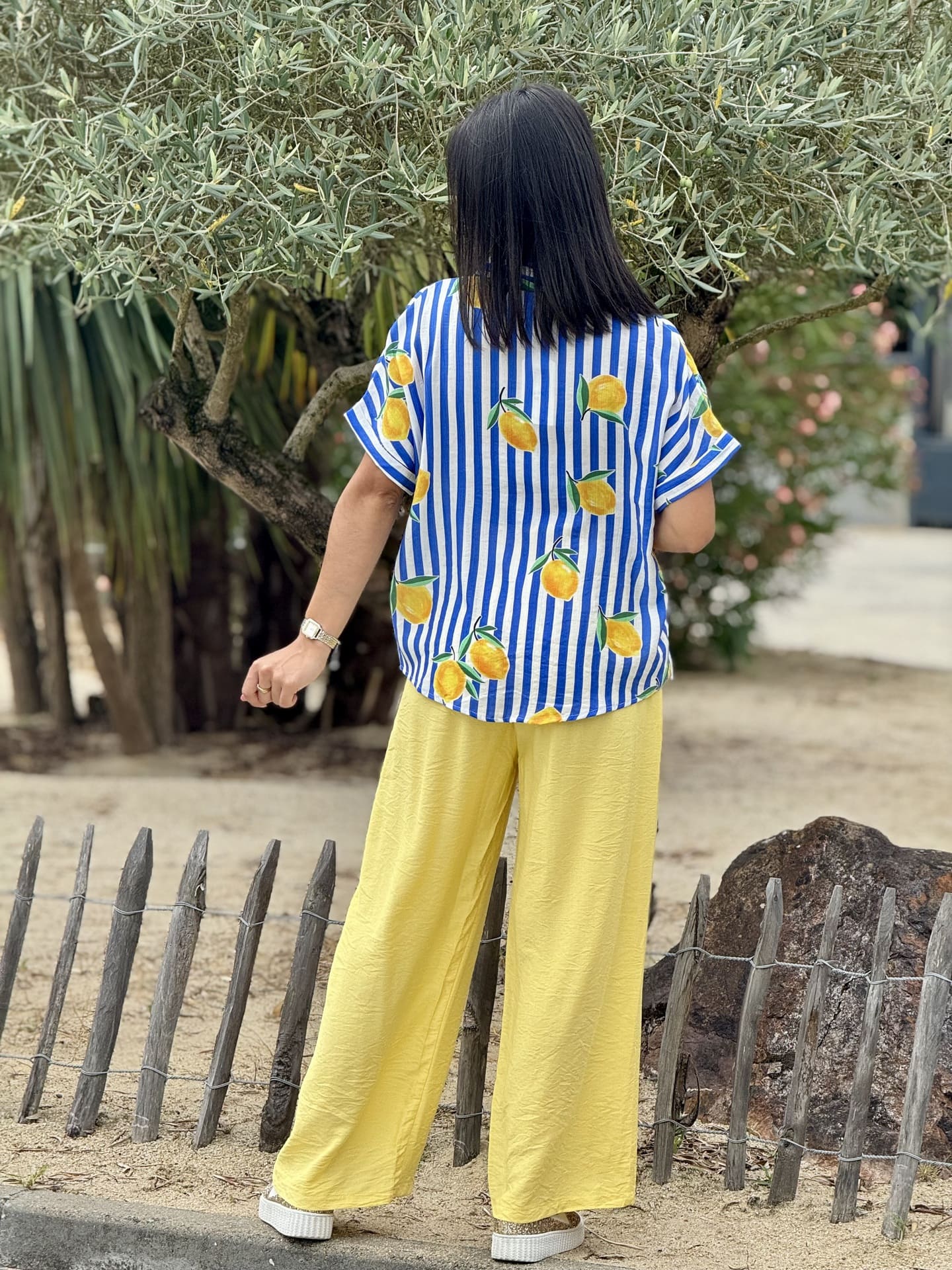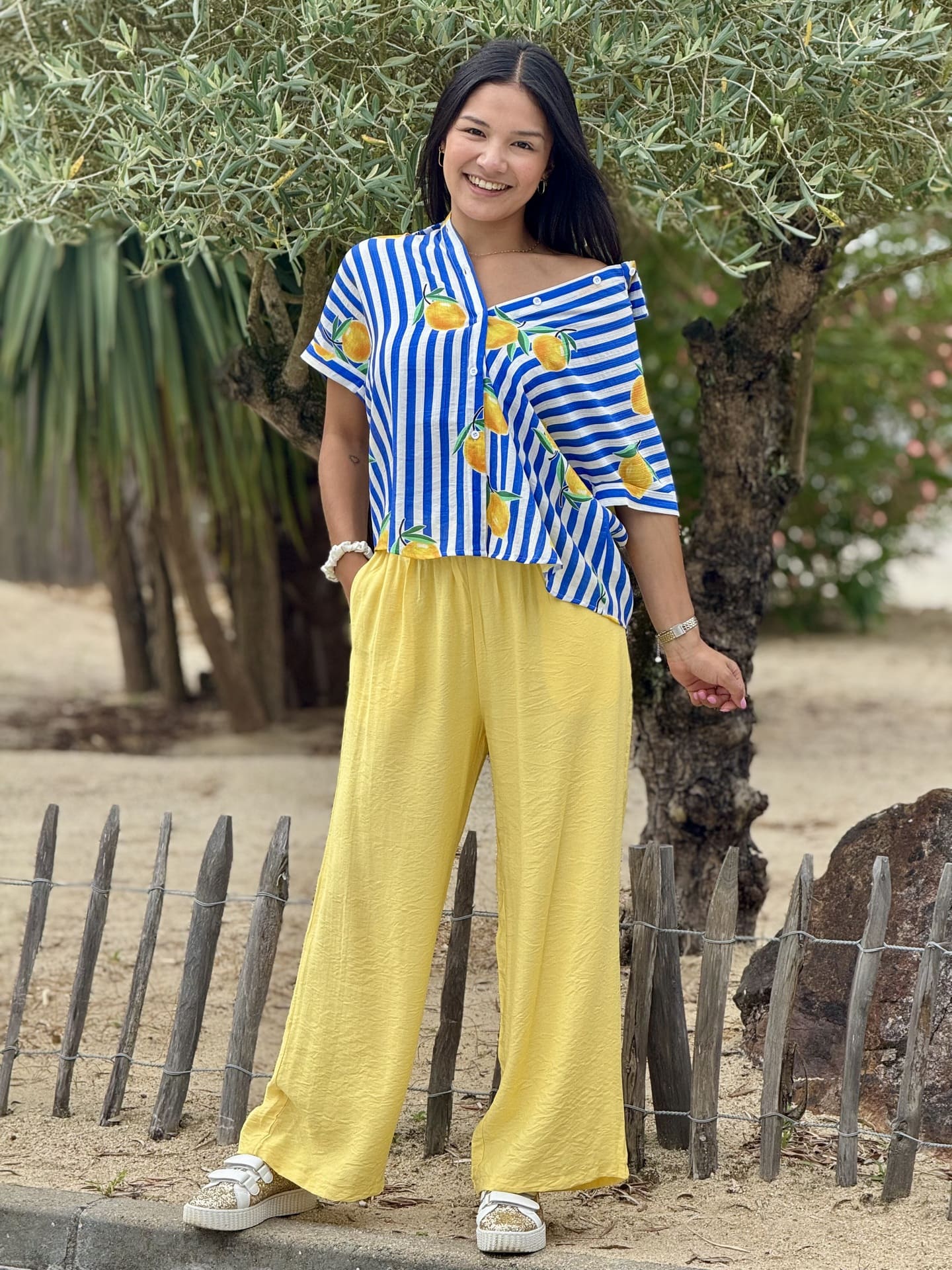 - Chemise à mc imprimé marinière + citrons