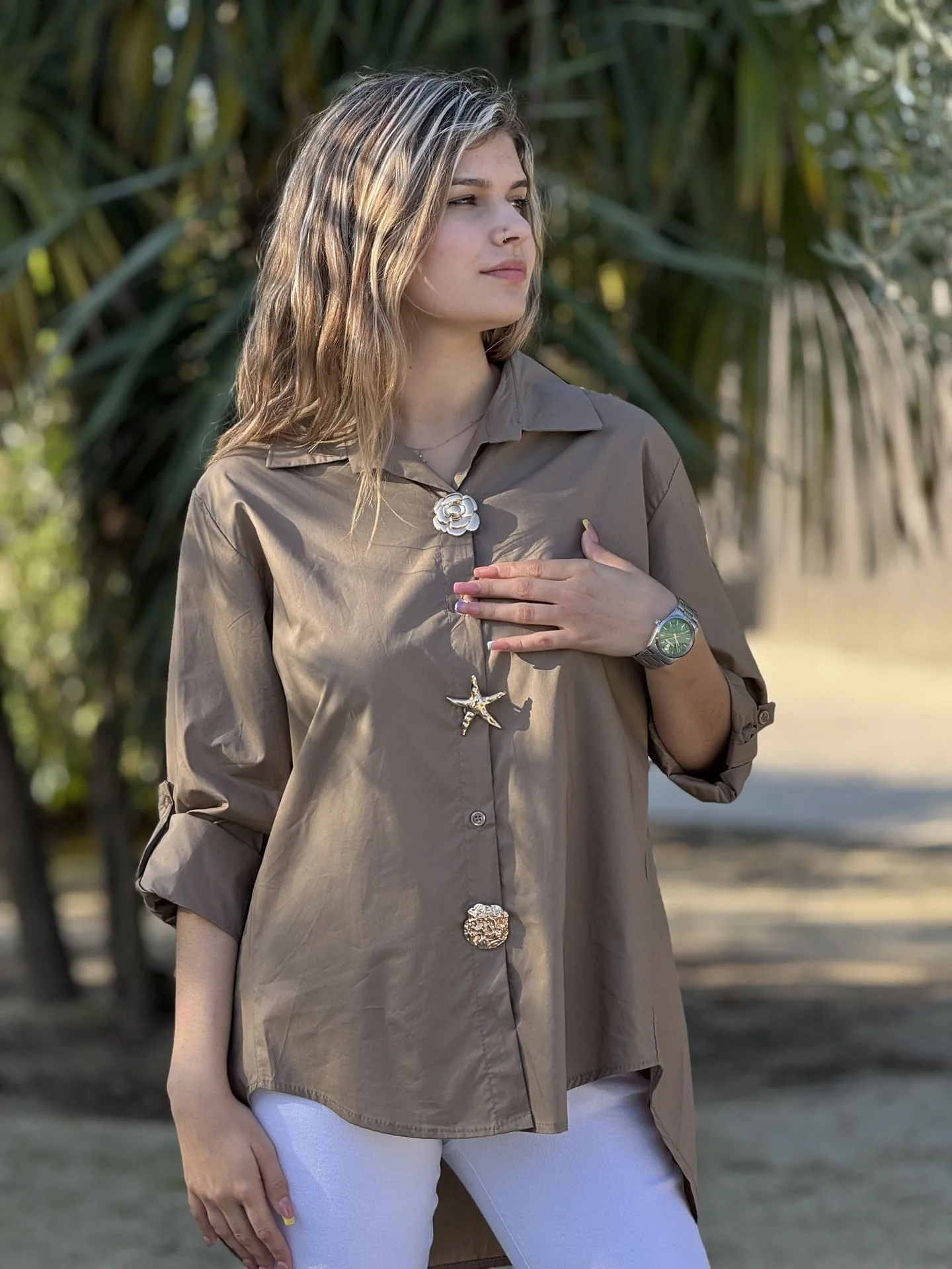 - CHEMISE AVEC BROCHE DORE SUR PATTE DE BOUTONNAGE