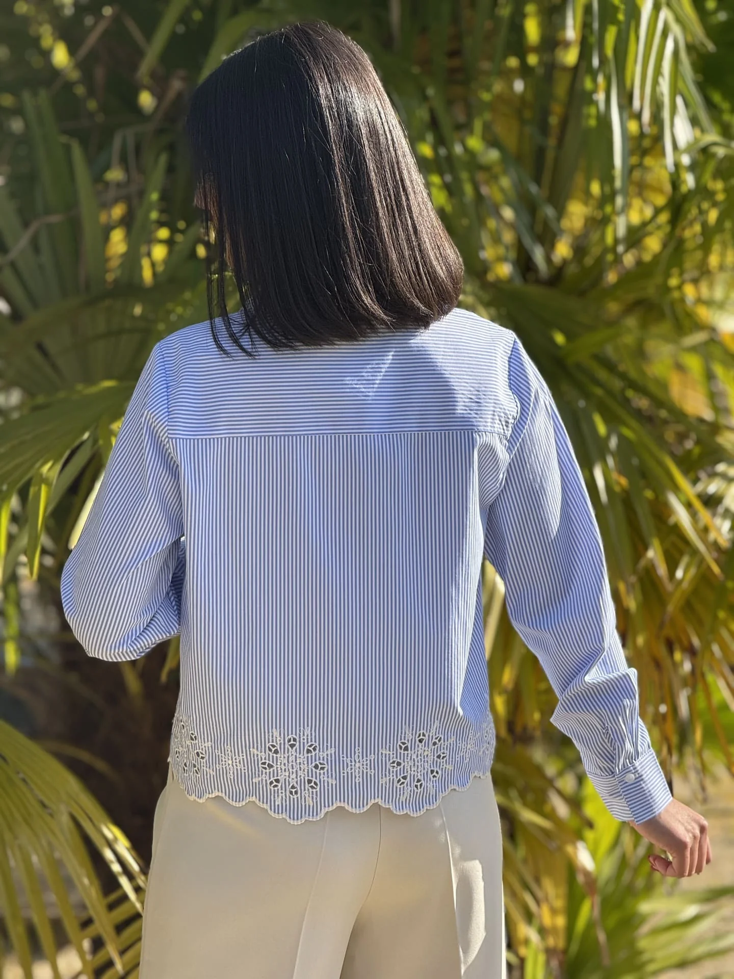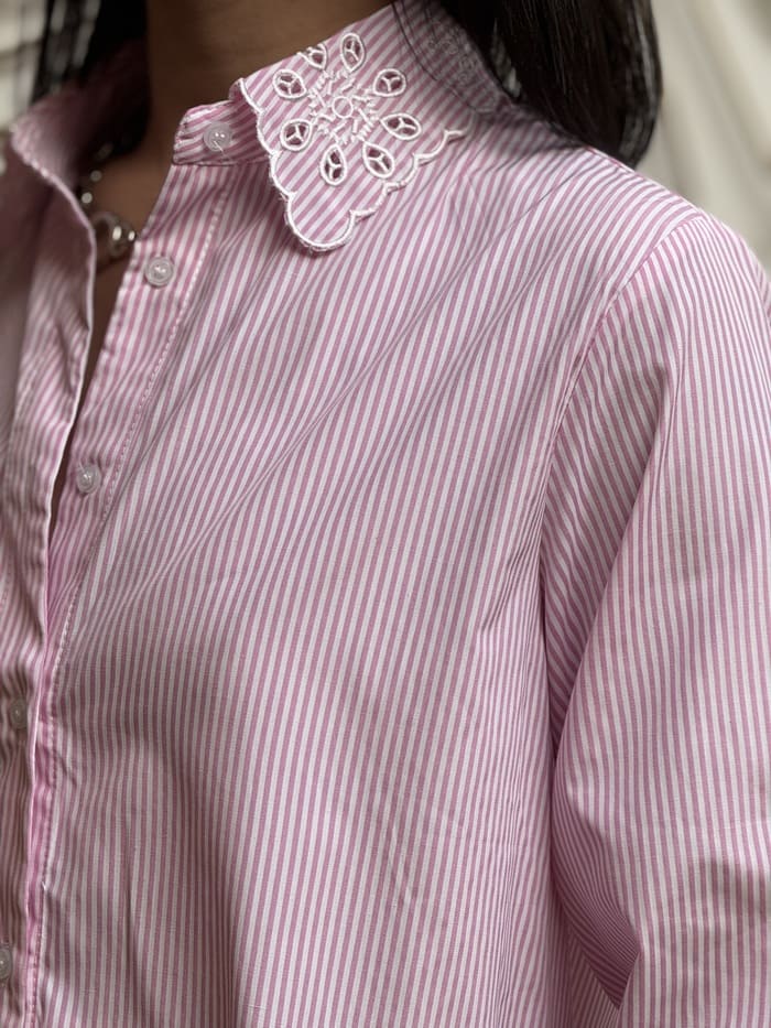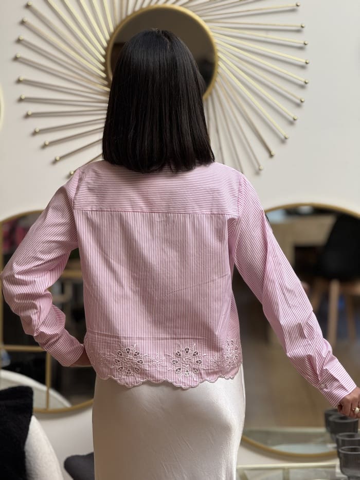 - CHEMISE COURTE à ml bas en dentelle – imprimé rayures