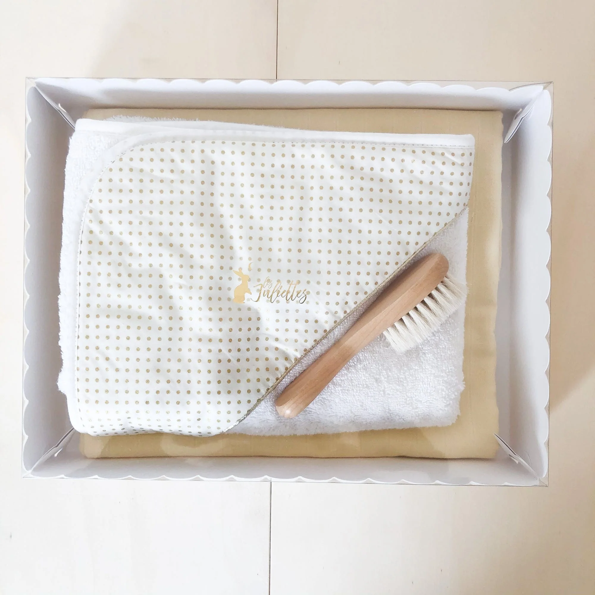 Offrez un cadeau de naissance qui a du sens, avec un coffret bain Vichy complet : – 1 cape de bain bébé aux dimensions généreuses pour envelopper bébé de douceur à la sortie de bain– 1 brosse à cheveux en poil de soie de chèvre, manche hêtre naturel.– 1 lange XXL – 120x120cm + 1 […]