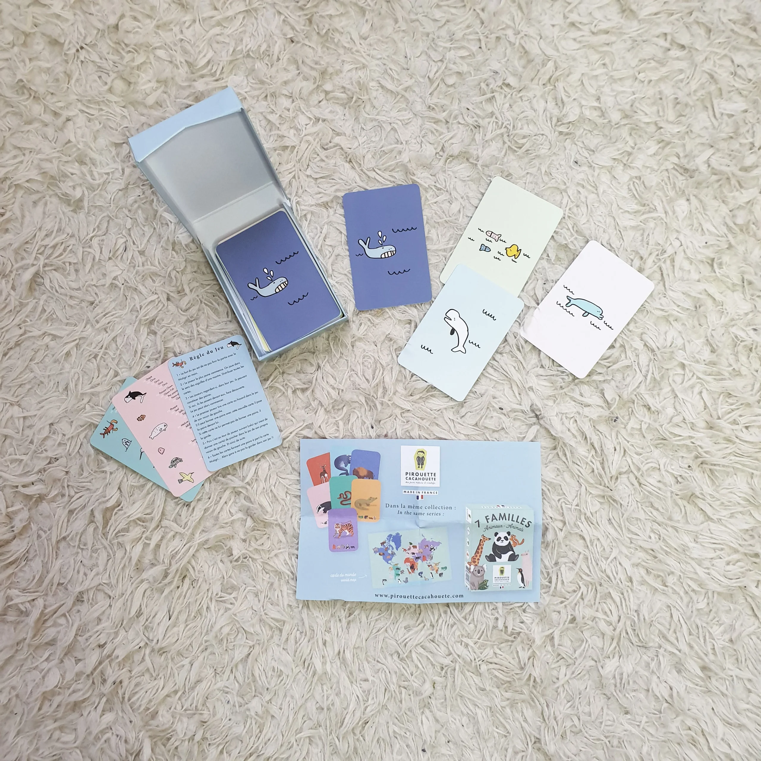 D’un jeu des 7 familles des animaux – Pirouette cacahouète : Éducatif et rigolo ! Un jeu de cartes pour toute la famille où chacun à leur tour, les joueurs doivent reconstituer les familles d’animaux selon leur lieu de vie et obtenir les six cartes de chacune d’entre elles. Les petits plus : 7 cartes listant le nom des animaux et le continent où ils vivent + 1 carte du monde situant les animaux Un jeu de mémoire et d’observation ! Jeu de cartes fabriqué en France idéal pour offrir à noël, pour un anniversaire, une fête…
