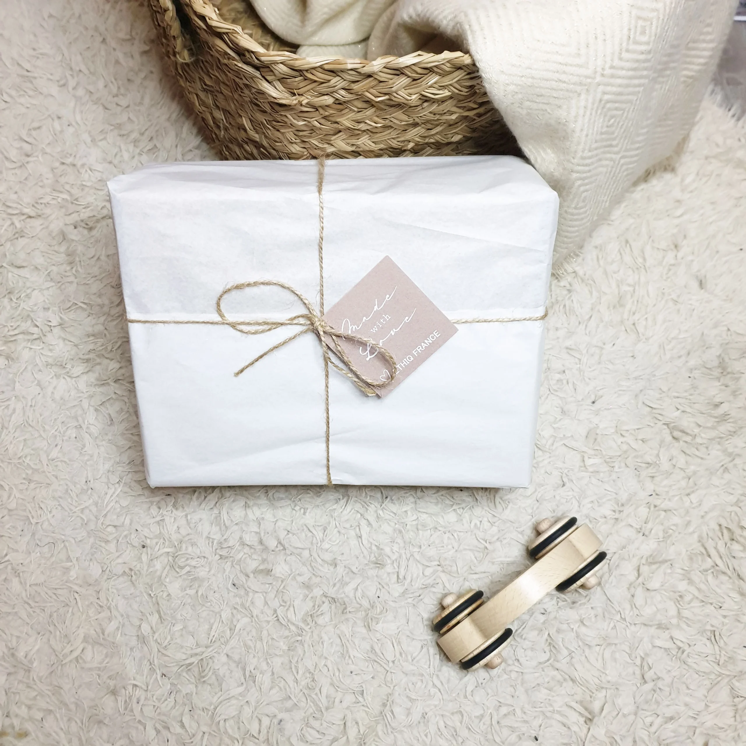 Un coffret cadeaux 100% eco-friendly « Jeux de société pour les P’tits Loups », livré dans son emballage cadeau en carton recyclé, papier de soie biodégradable blanc et du fil de jute naturel.