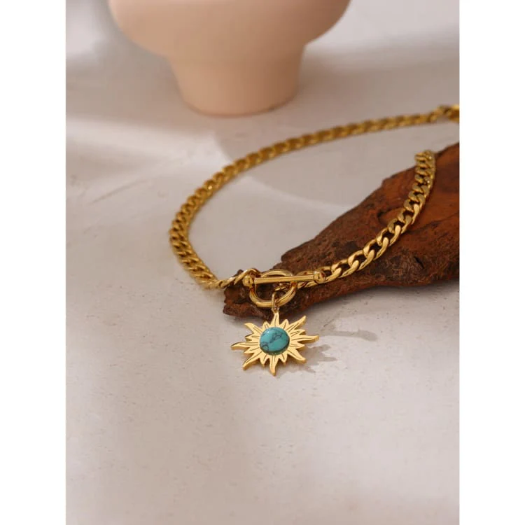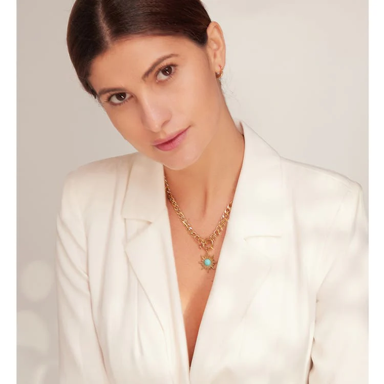 - Matériaux : Acier inoxydable plaqué or 18 carats, Turquoise