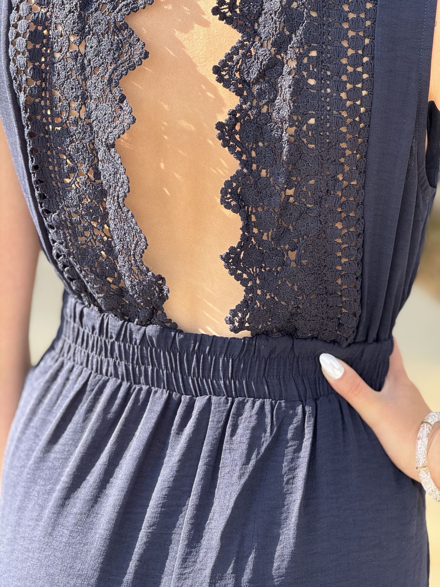 - Combipantalon col v grosse bretelle dentelle de fleur dans le dos