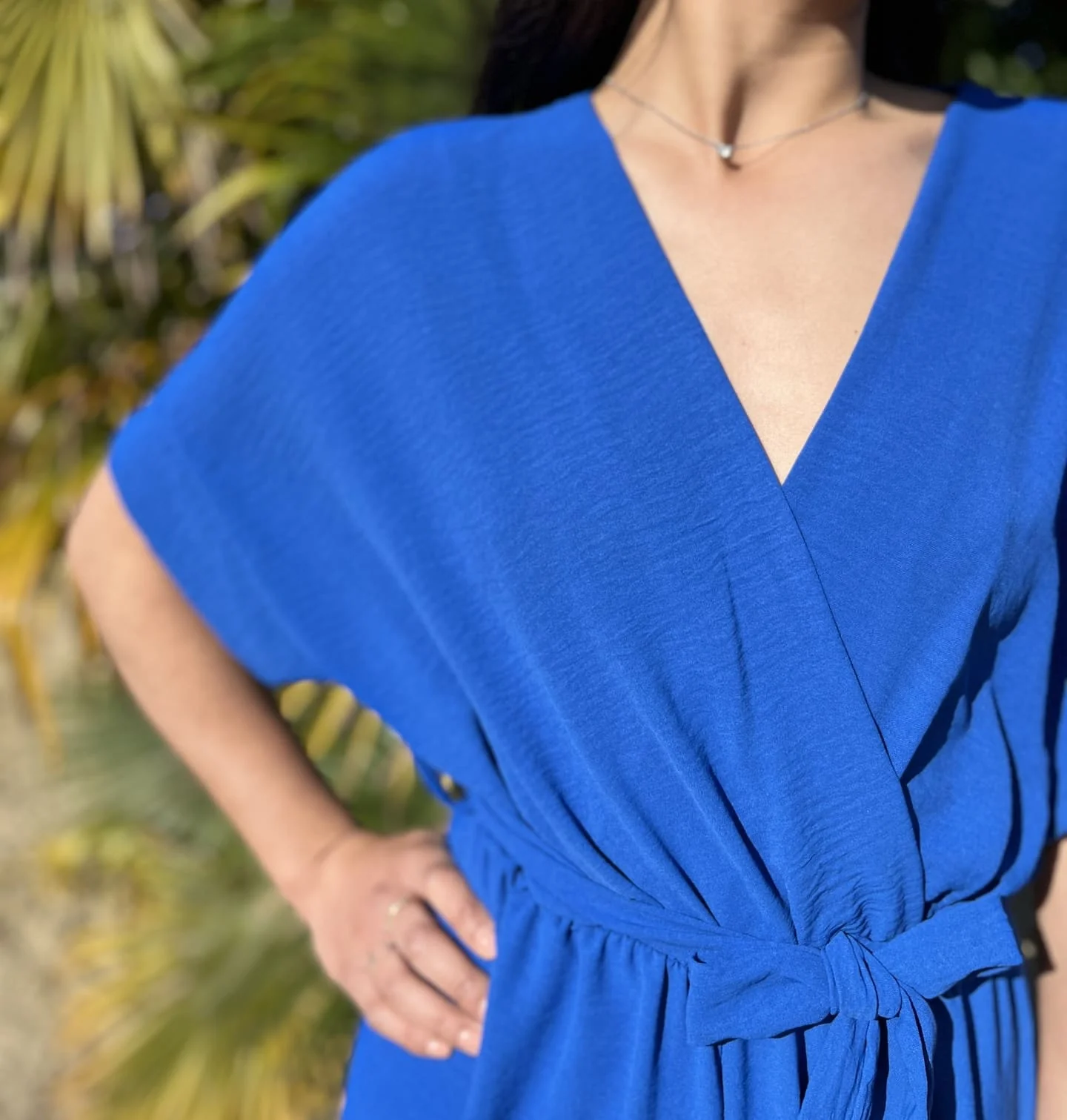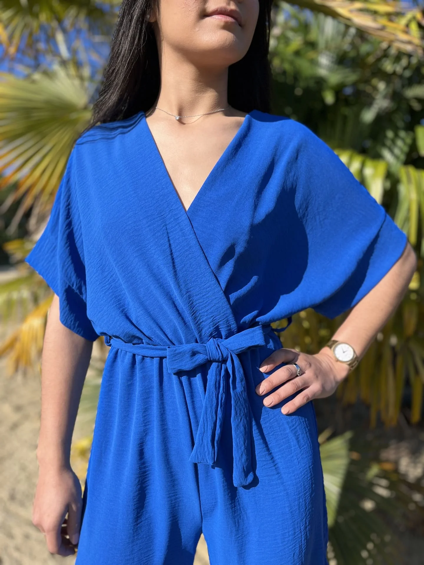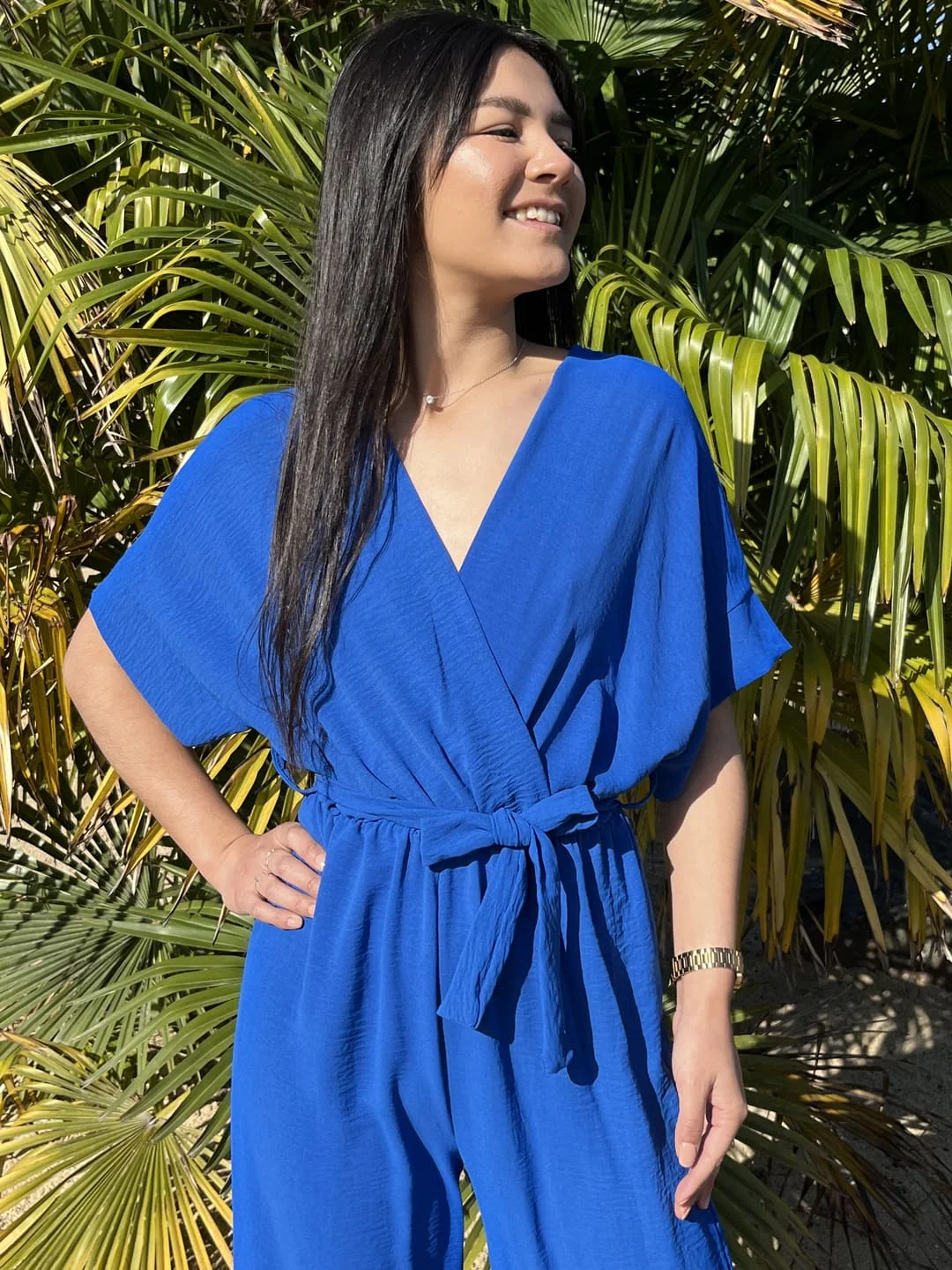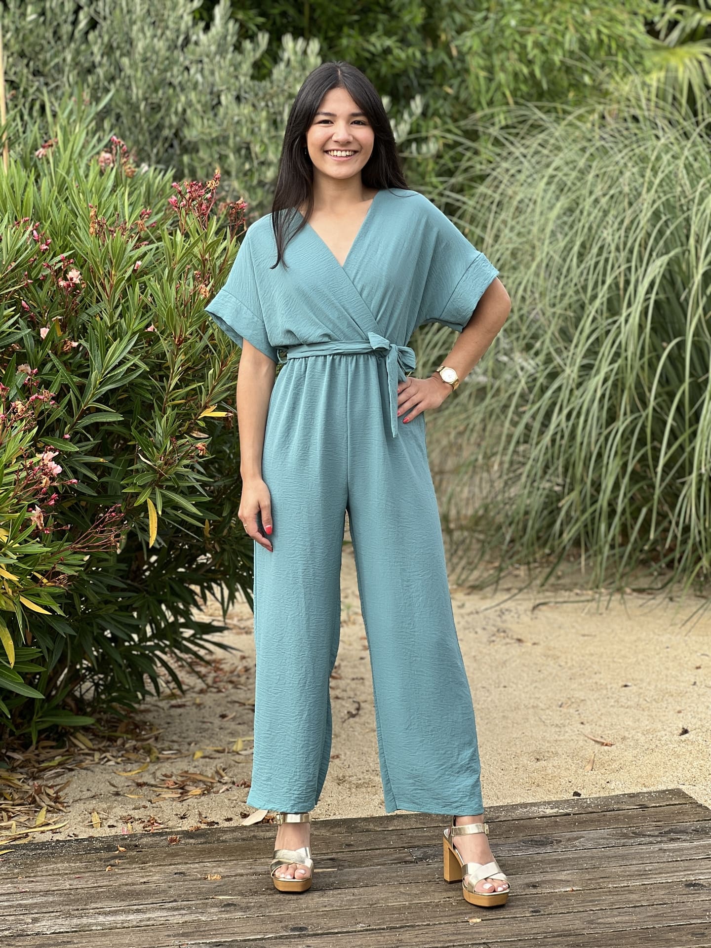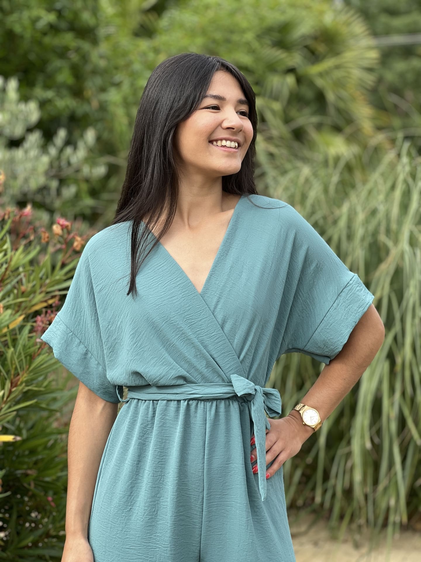 - COMBINAISON PANTALON – COL V – CEINTURE TAILLE – MANCHES 3/4