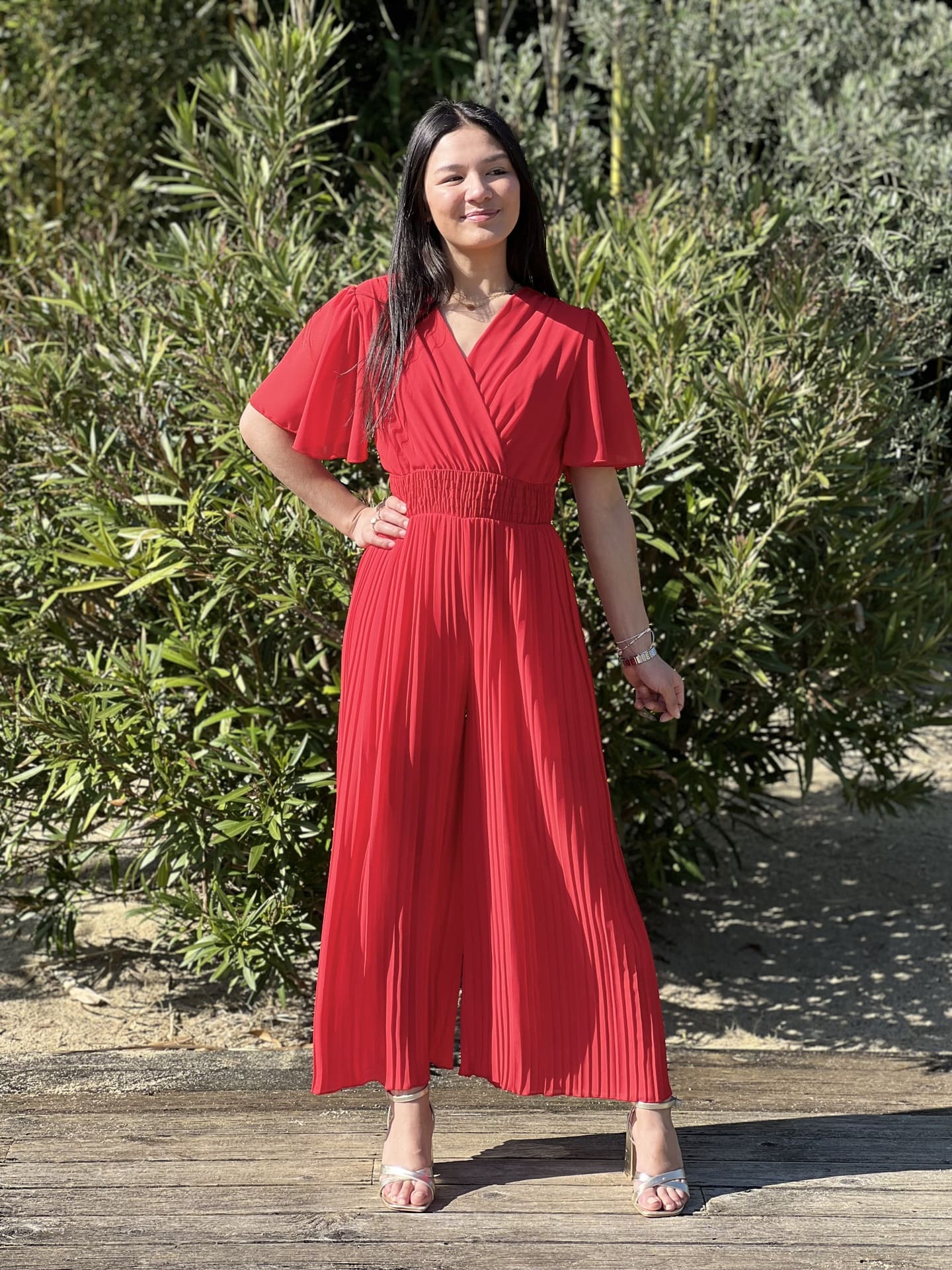 - Combinaison à mc fluide col cache cœur – resserré à la taille