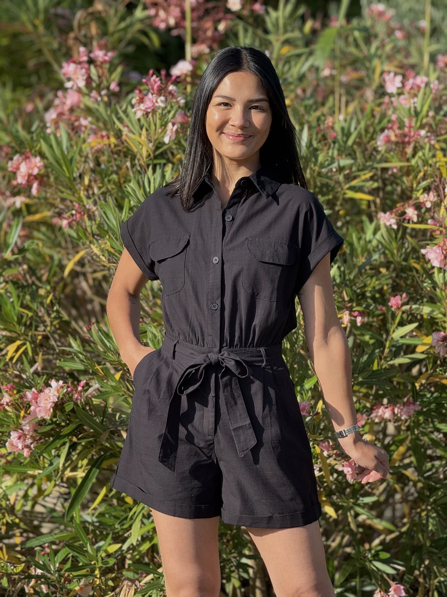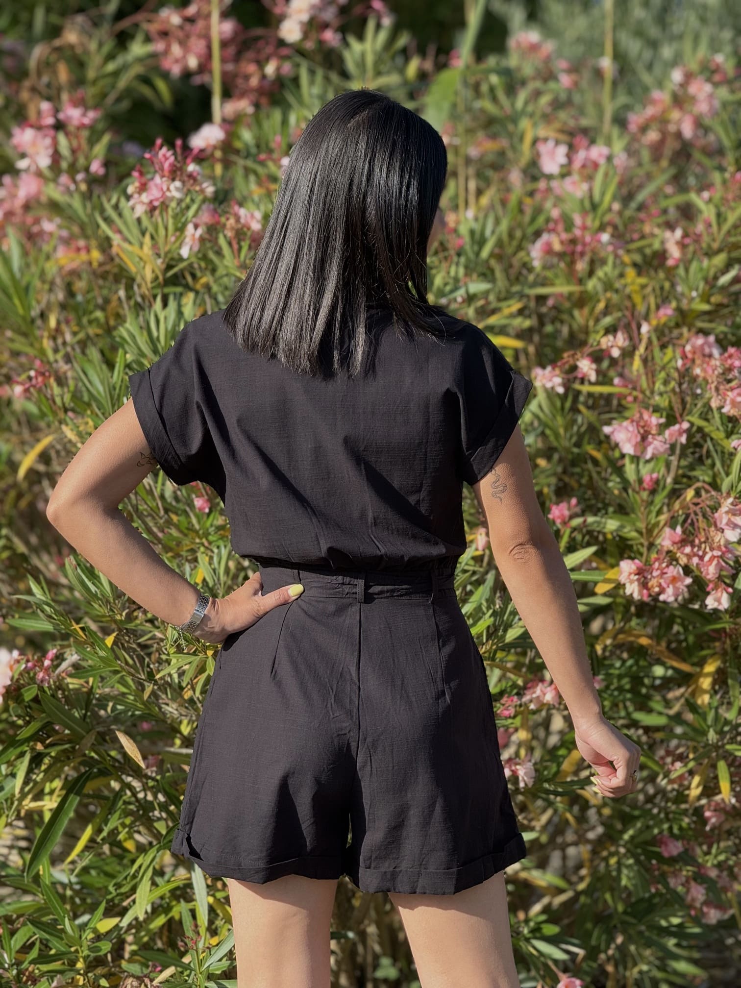 - COMBISHORT A MC 2 POCHES DEVANT + CEINTURE A LA TAILLE + BOUTON DEVANT