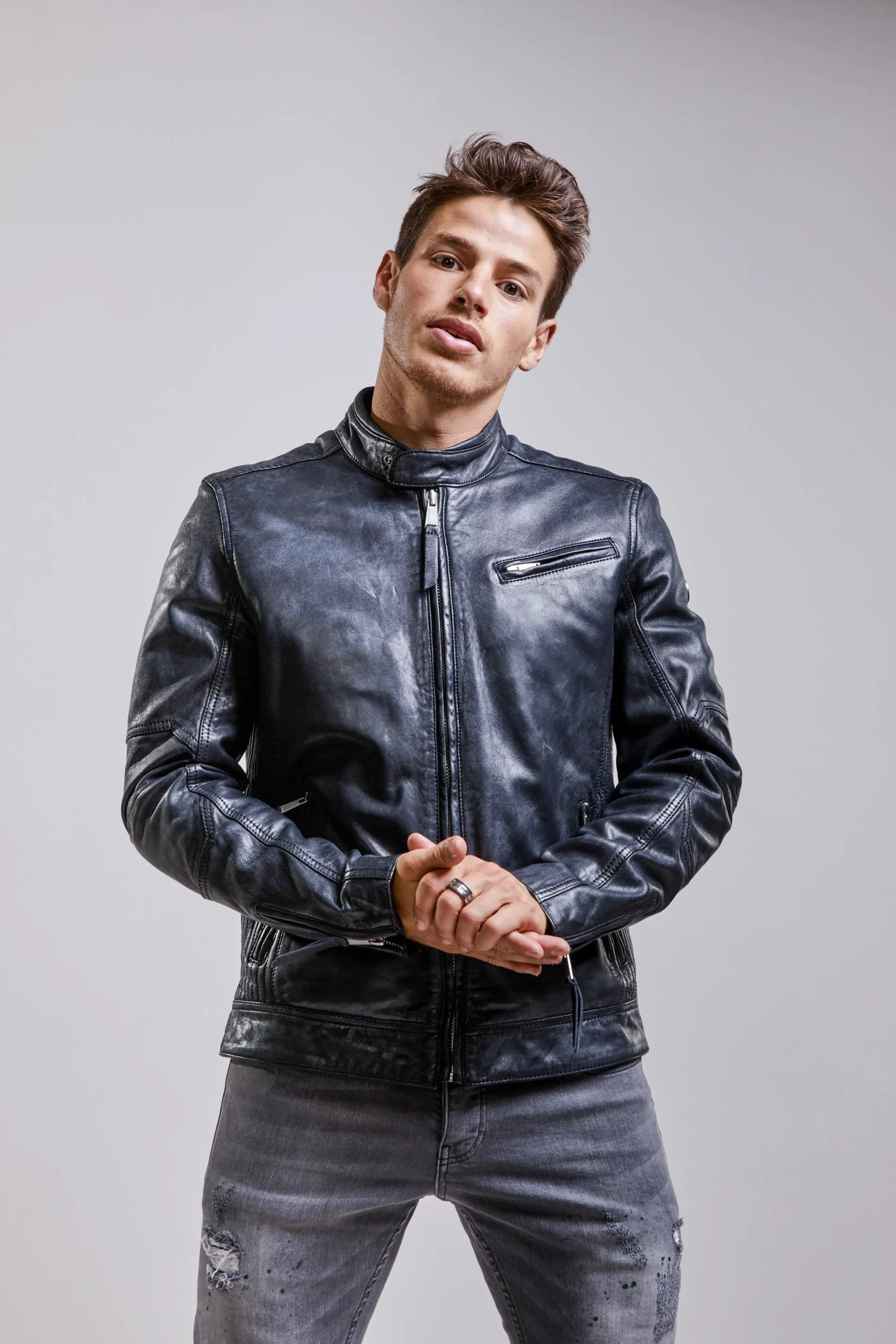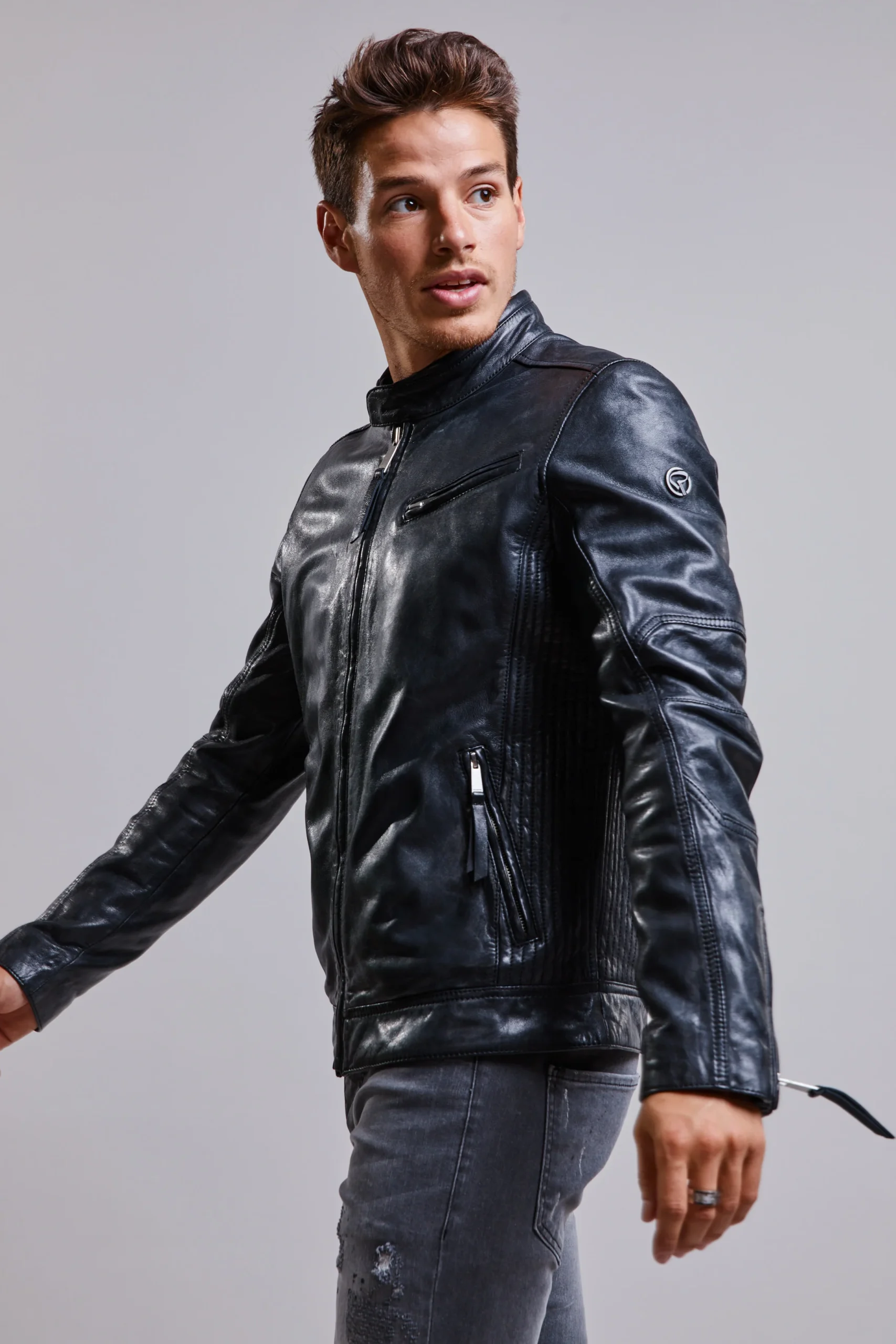 Blouson en cuir noir NORIS GREEN