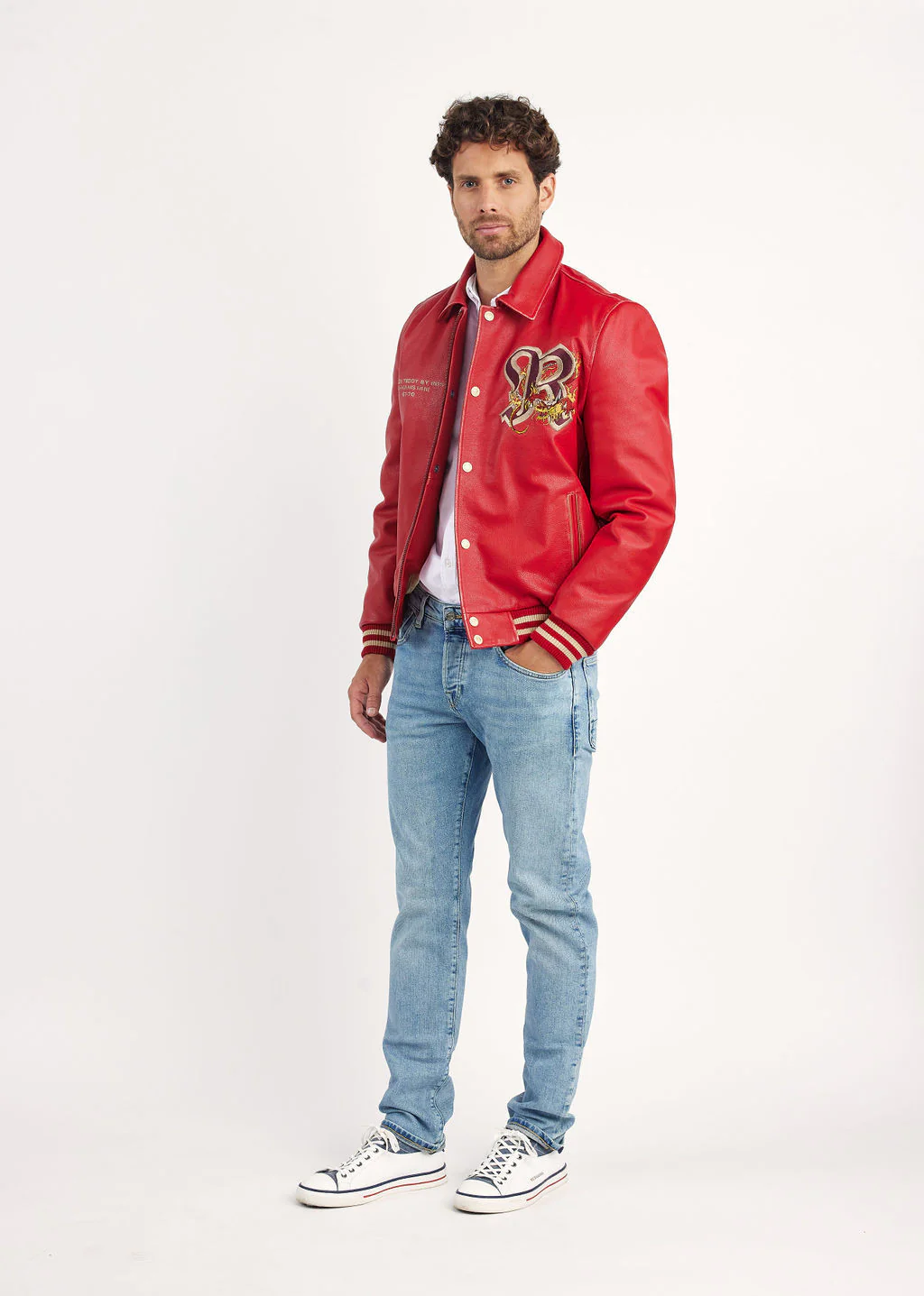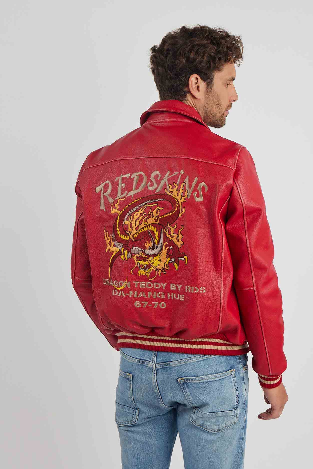 Découvrez le CUIR DRAGON COHIBA, veste style oversize, broderie d’un dragon et de « Redskins » dans le dos, broderie « R » sur la face avant gauche et broderie d’un petit texte sur la face avant droite, 2 poches passepoilées latérales, fermeture à boutons de pressions, parfait pour un style moderne et attrayant, composition : cuir de vache, nos produits sont cintrés, il est recommandé de prendre une taille au dessus !