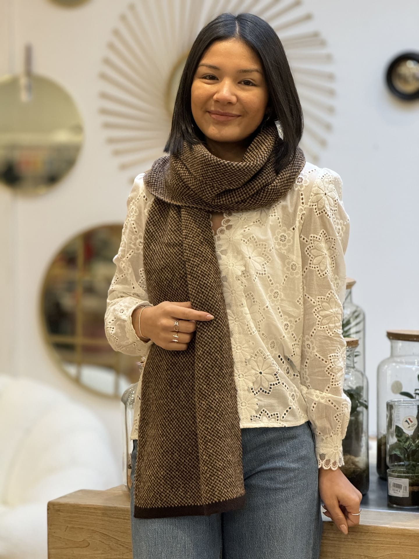- ECHARPE CHOCOLAT AVEC BANDE PLUS FONCÉE EN BAS