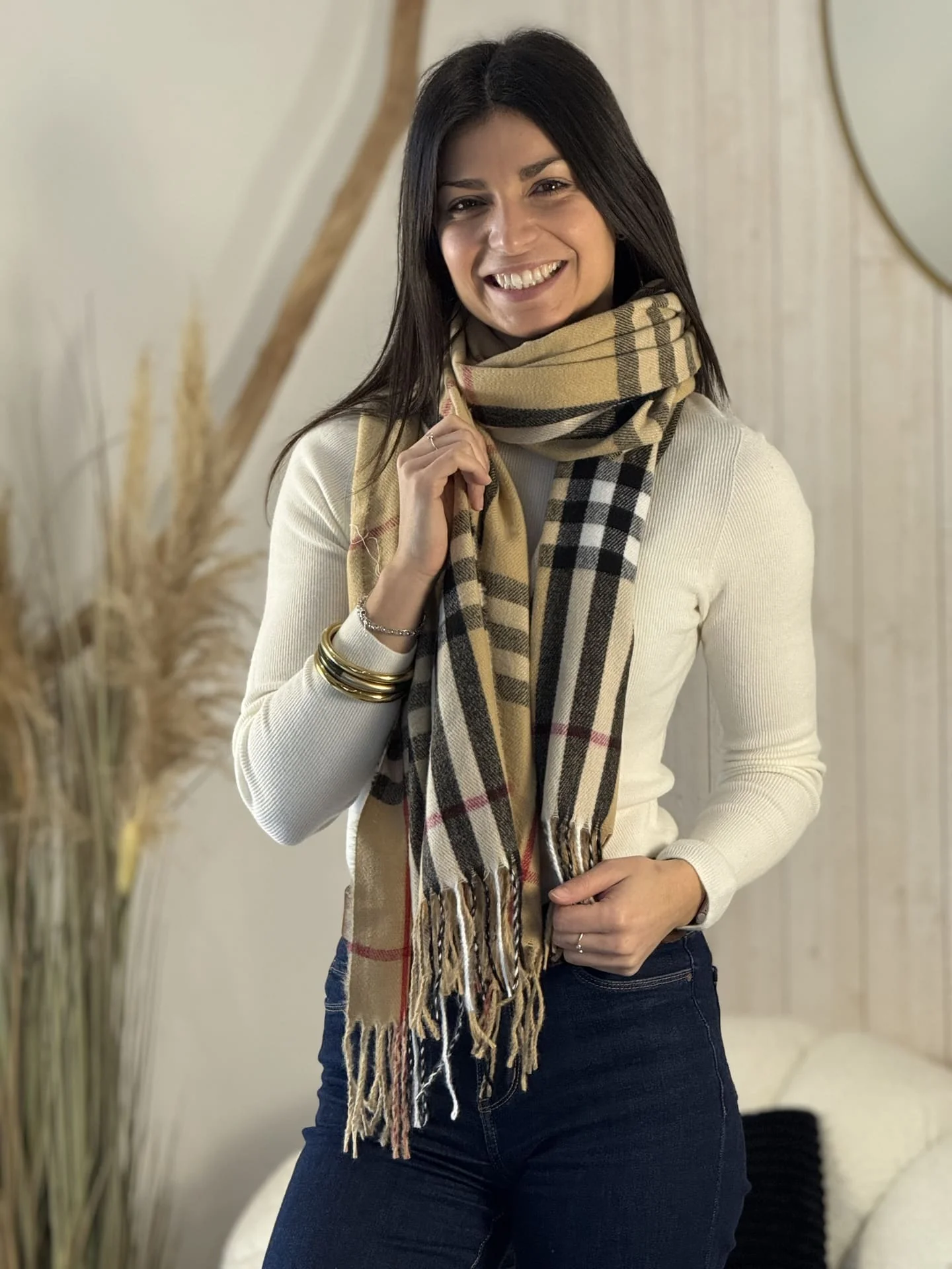- ECHARPE FRANGES IMPRIMÉE CARREAUX