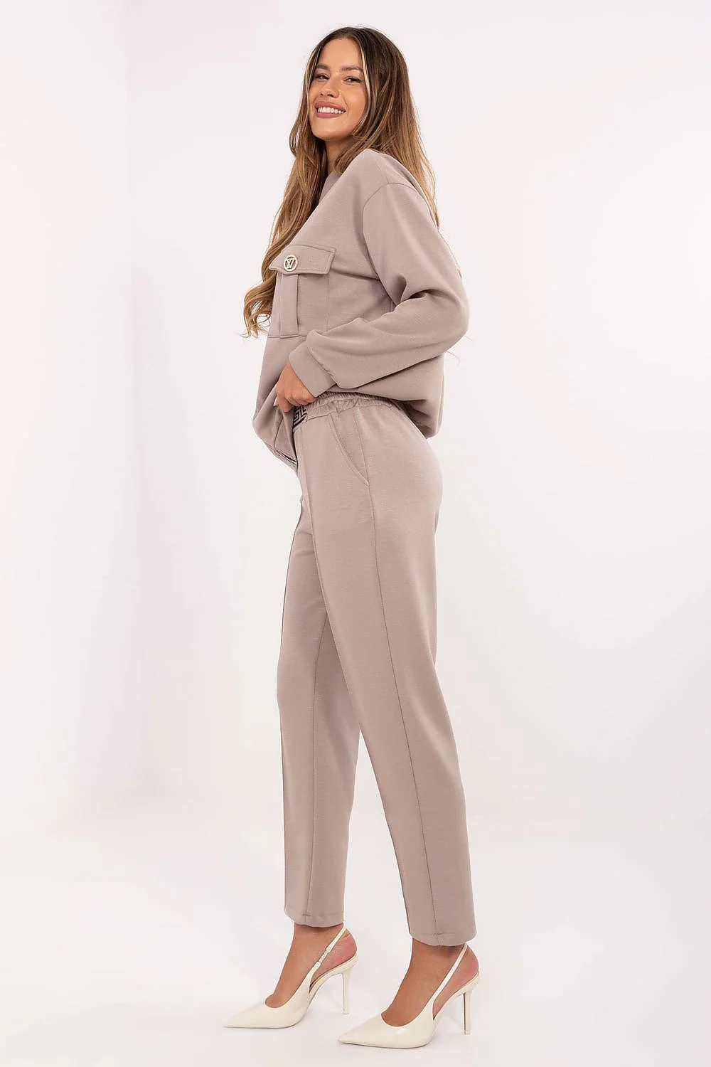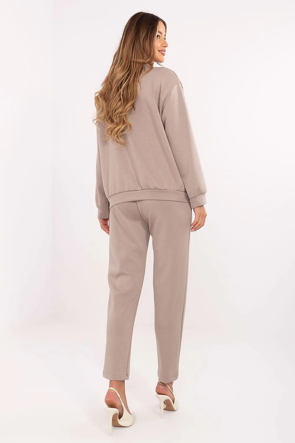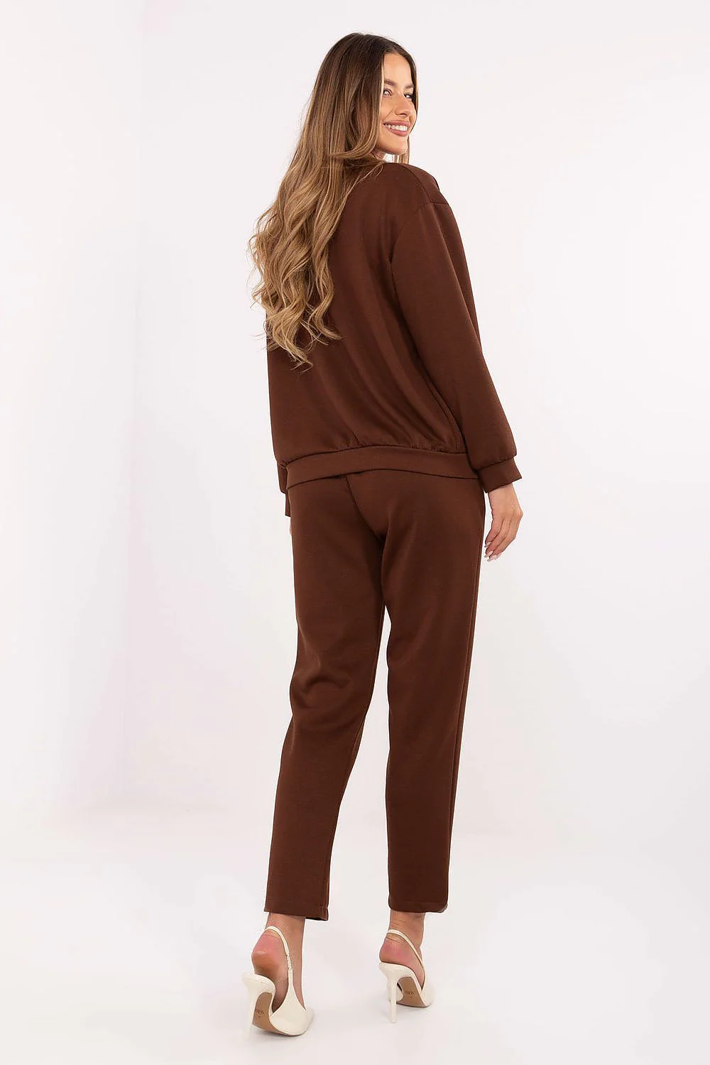 Ensemble 2 pièces Veste manches longues Fermeture éclair Avec poches Pantalon coupe droite Ceinture décorative intégrée Avec poches