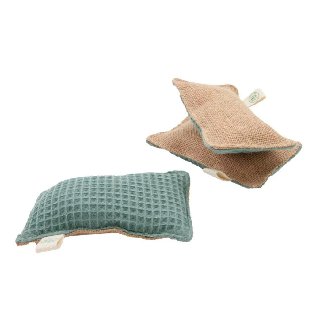 – Éponge « Grattante » (1 face en jute, l’autre en coton nid d’abeille biologique certifié GOTS)