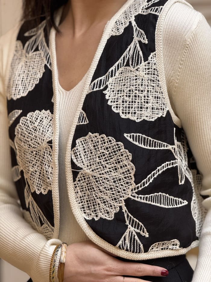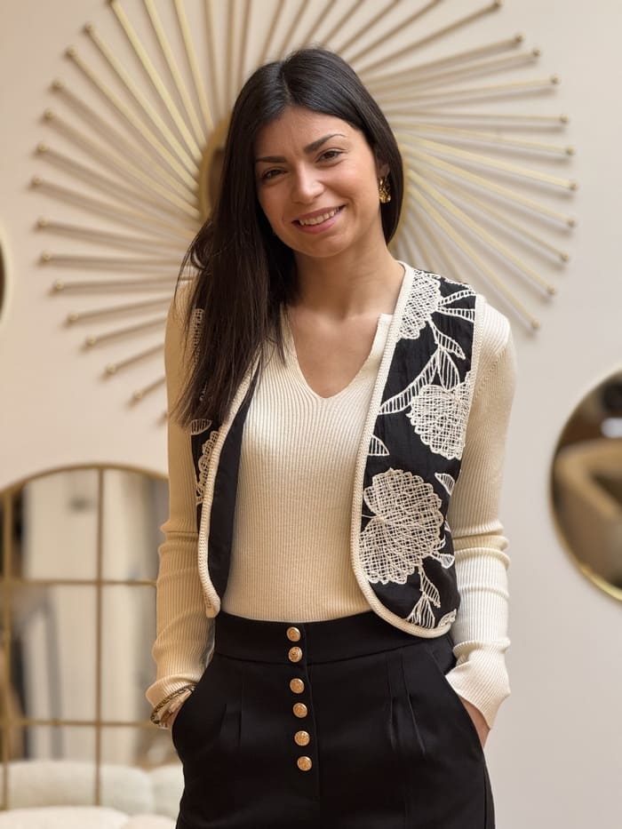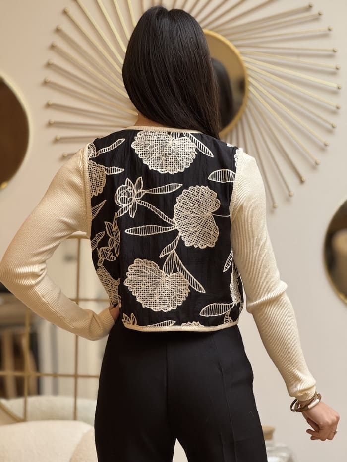 Gilet sans manche imprimé patch fleur broder Justine mesure 1m69. Elle porte la taille S pour ce modèle. Taille : XS (34) / S (36) / M (38) / L (40) / XL (42) Composition & entretien : 60% POLYAMIDE 40% COTON Lavage à la main conseillé Besoin d’un conseil ? Consultez notre foire aux […]