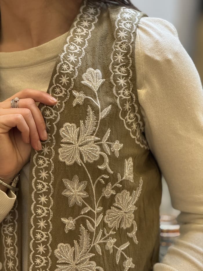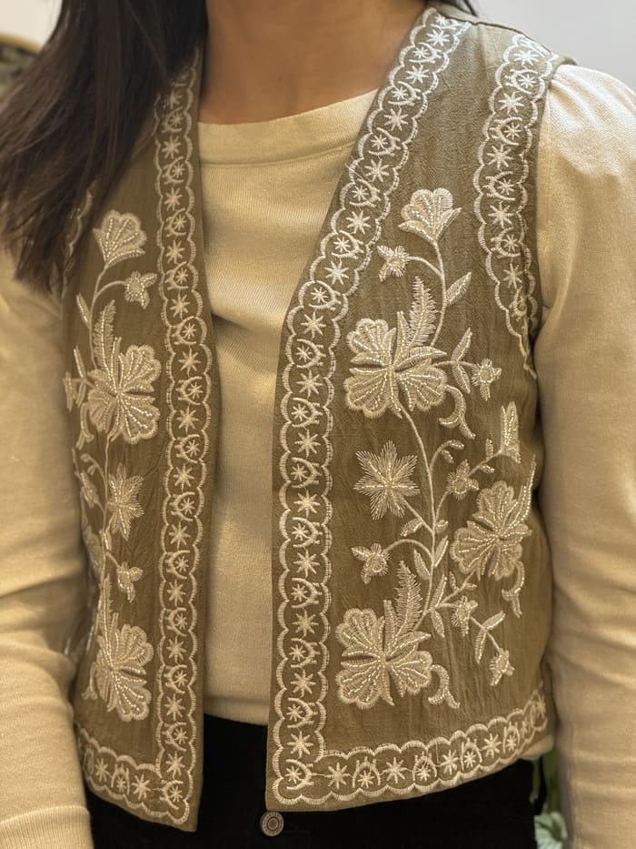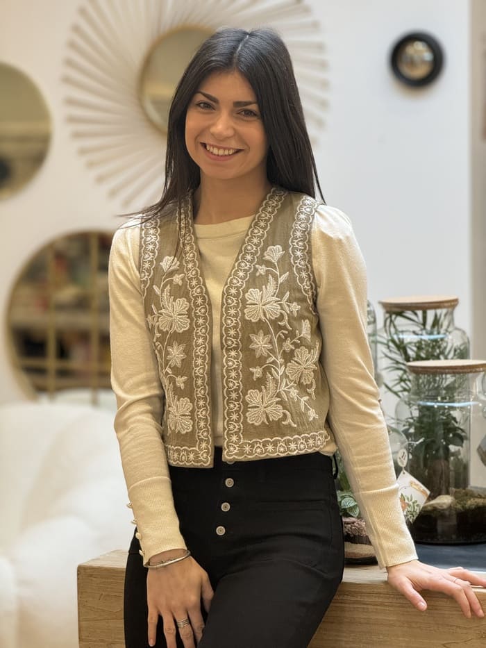 Gilet sans manches imprimé fleurs avec mini perles Taille : Justine mesure 1m69. Elle porte la taille S/M pour ce modèle. Taille : S/M (36-38) – M/L (38-40) Composition & entretien : 100% COTON Lavage à la main conseillé Besoin d’un conseil ? Consultez notre foire aux questions ou contactez-nous via notre formulaire de contact