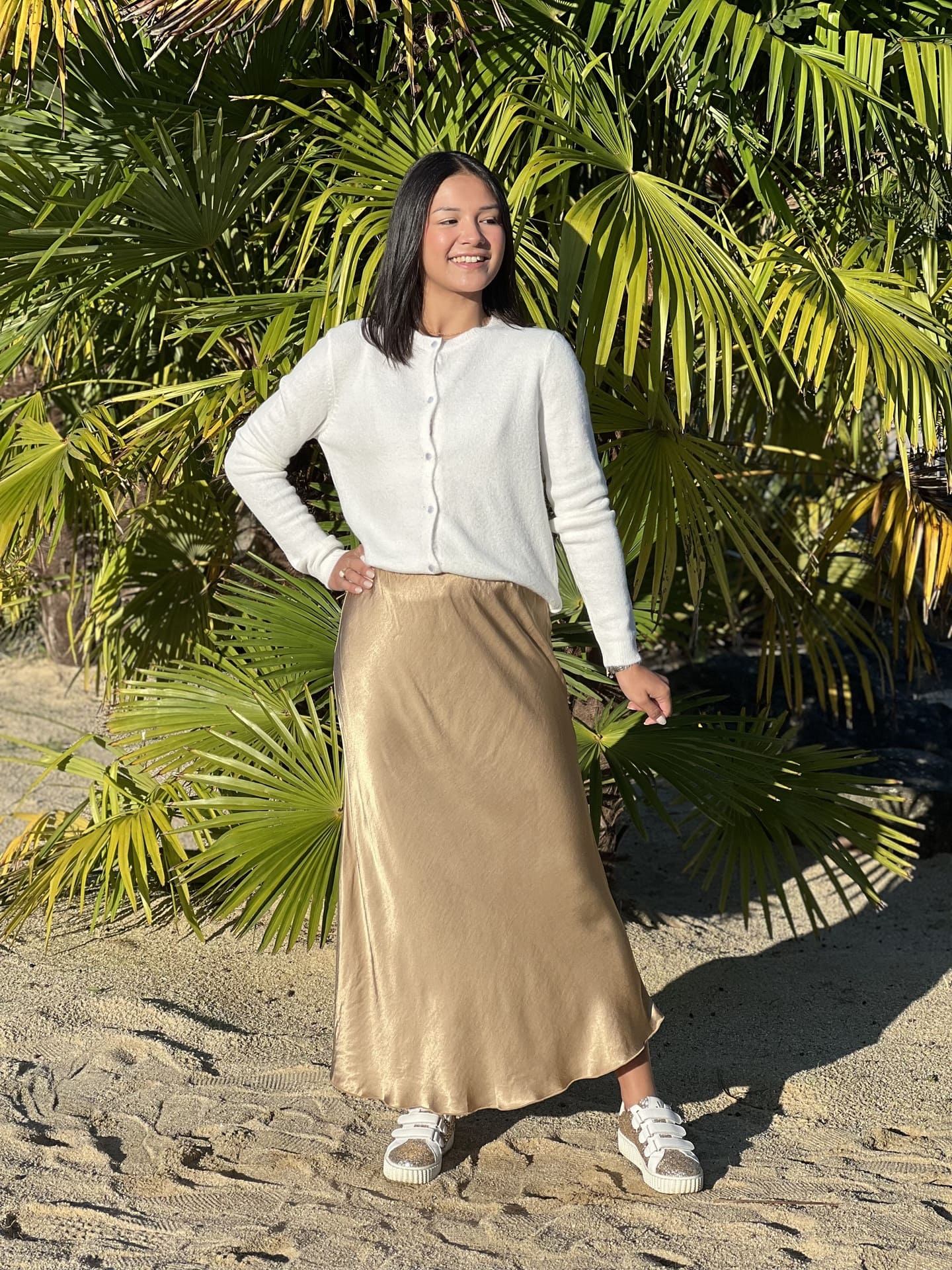 Juliette mesure 1m63 et Mathilde mesure 1m65. Elles portent la taille S/M pour ce modèle.