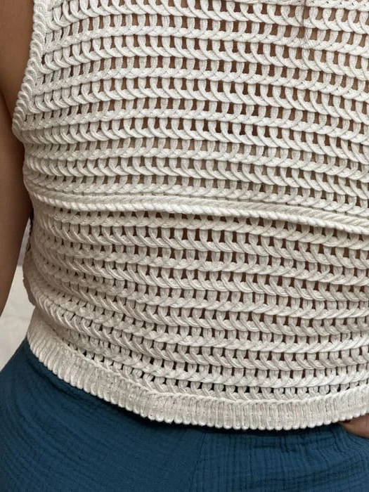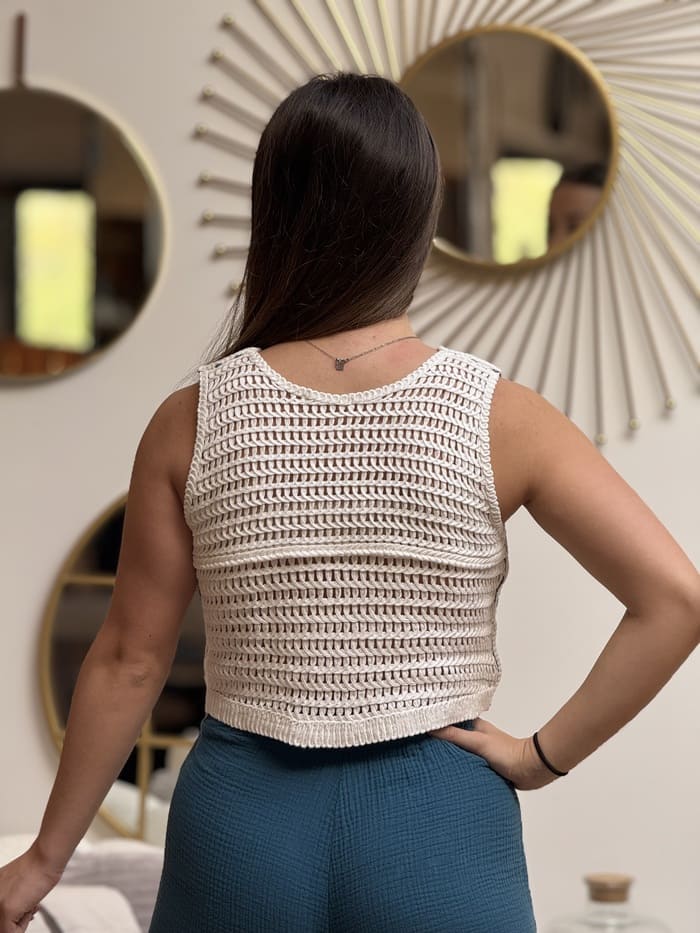 - GILET en crochet sans manche court col v boutons devant