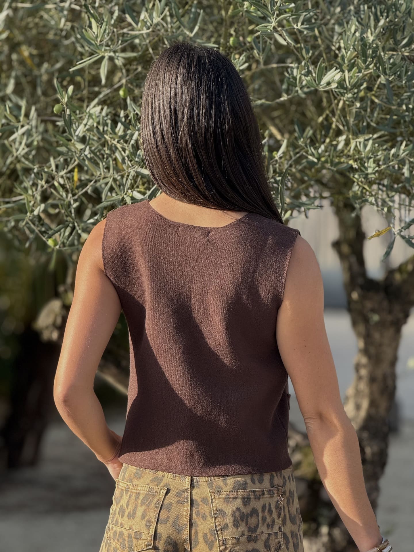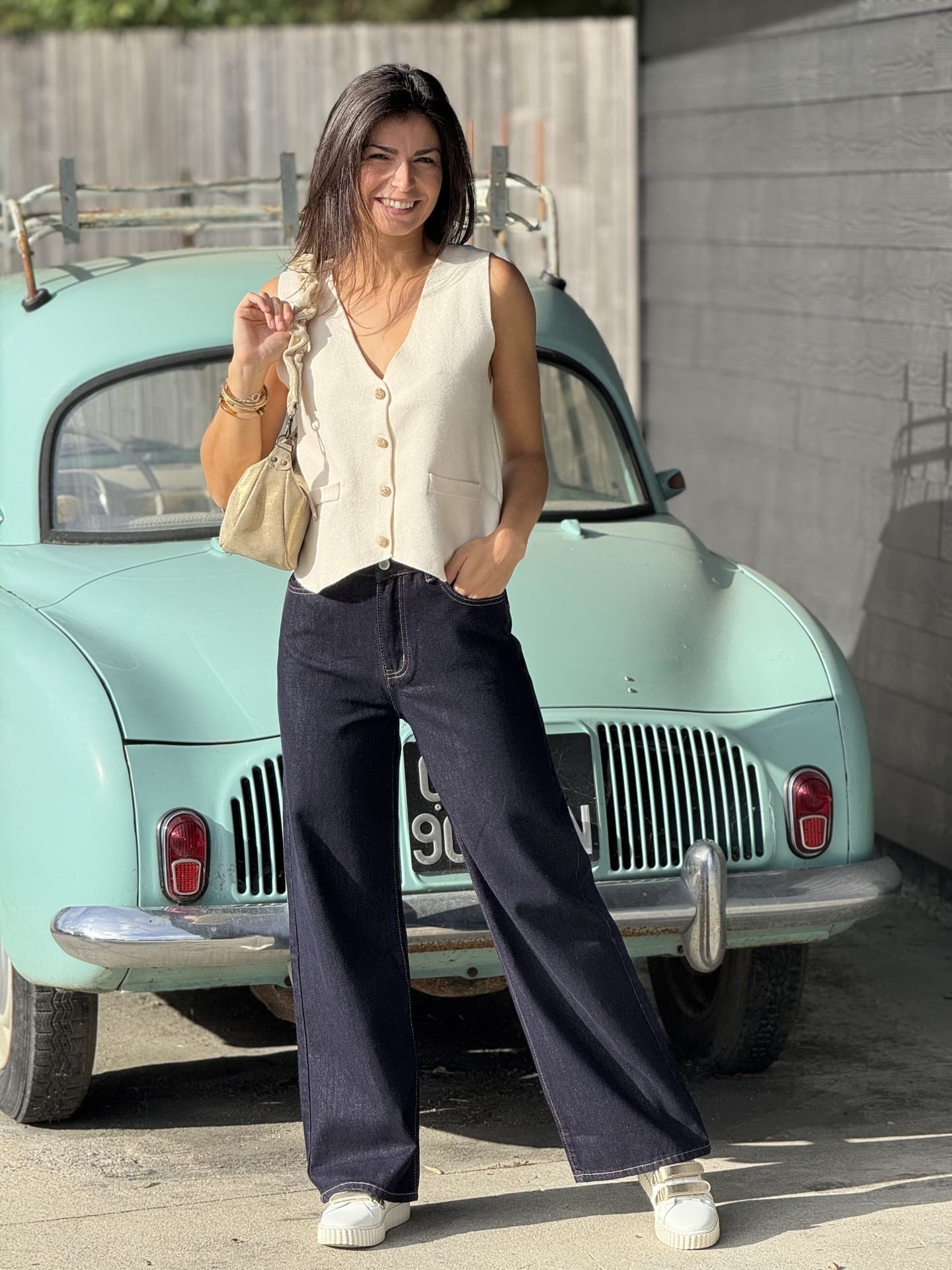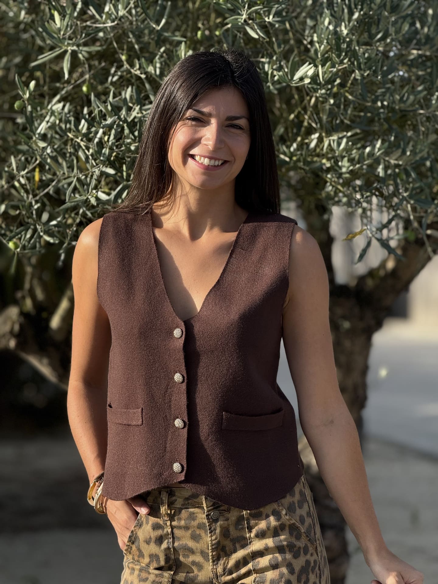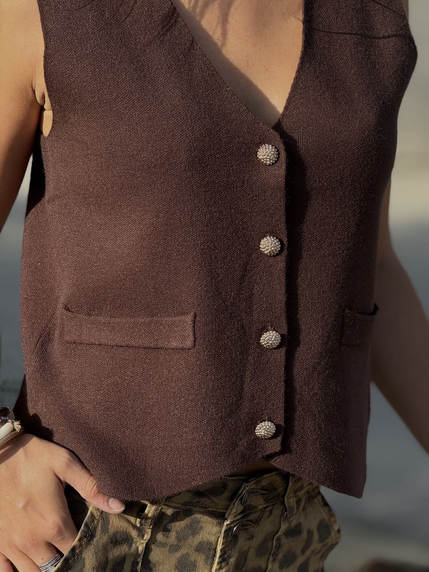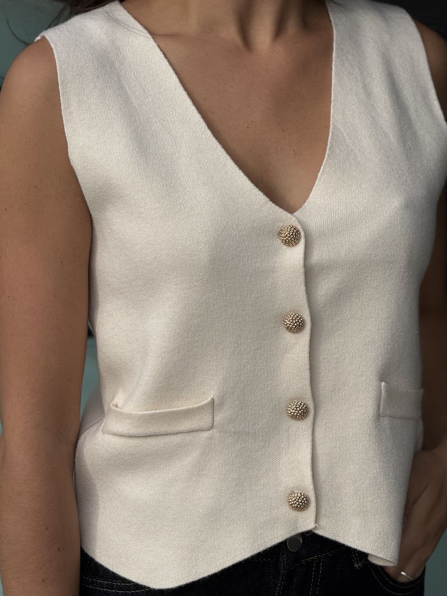 - Gilet sans manche style bolero avec 4 boutons doré – 2 poches devant