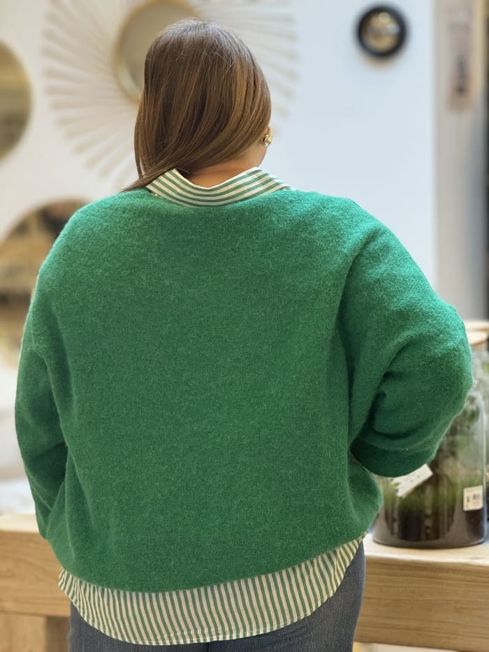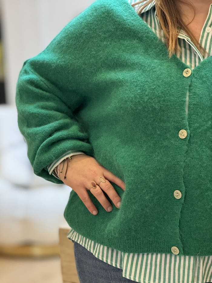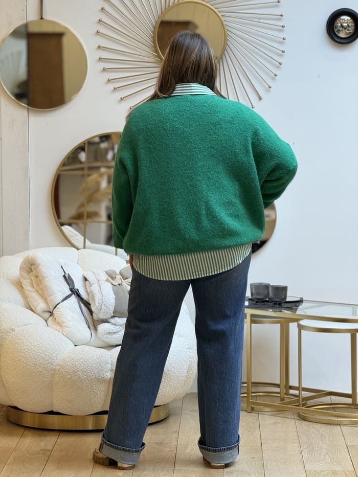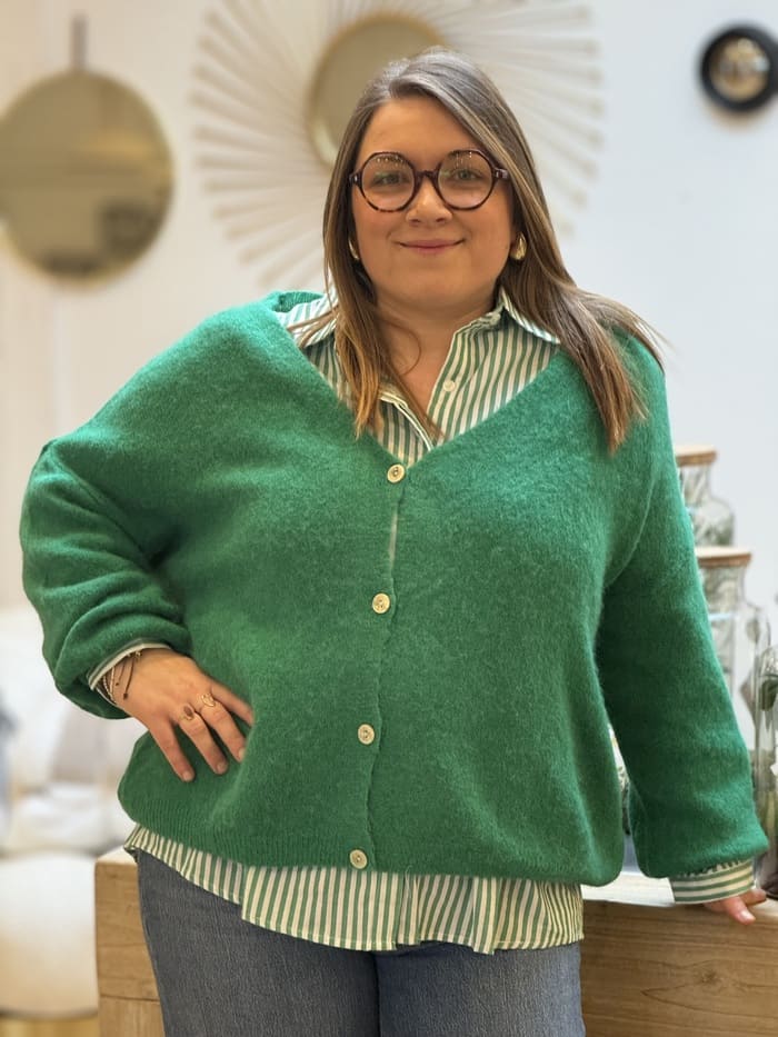 Gilet à ml col v avec petits boutons uni Taille : Margaux mesure 1m55. Elle porte une taille unique GT (42-48) pour ce modèle. Mathilde mesure 1m68 et Justine mesure 1m69. Elles portent la taille taille unique pour ce modèle. Taille unique (36-42) Taille unique GT (42-48) Composition & entretien : 30% ALPAGA 35% ACRYLIQUE […]