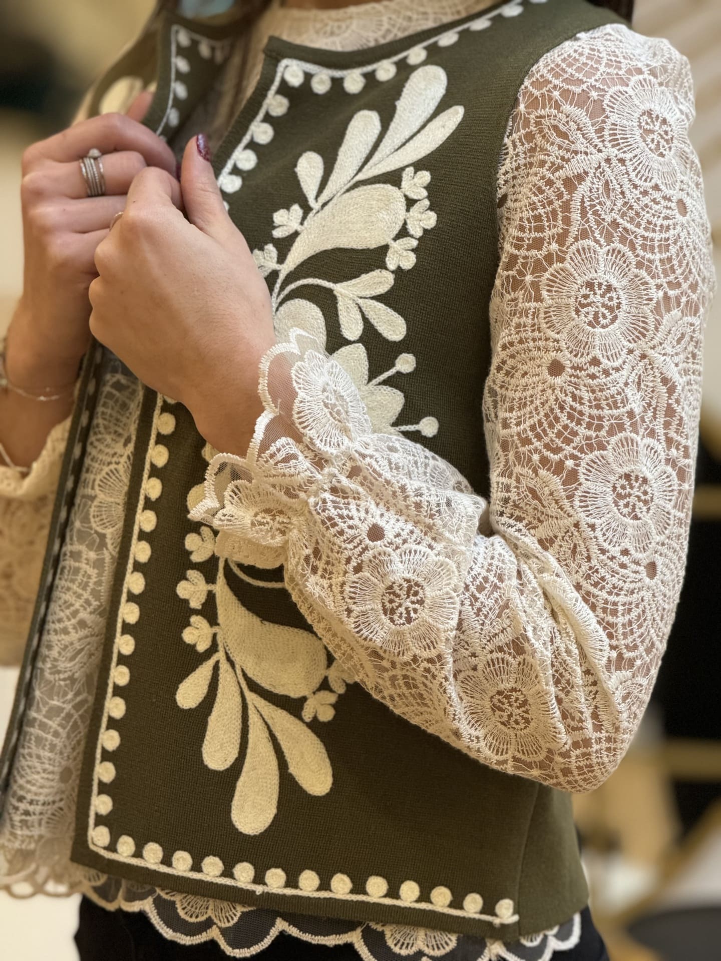 - Gilet sans manche motif broderie feuillage