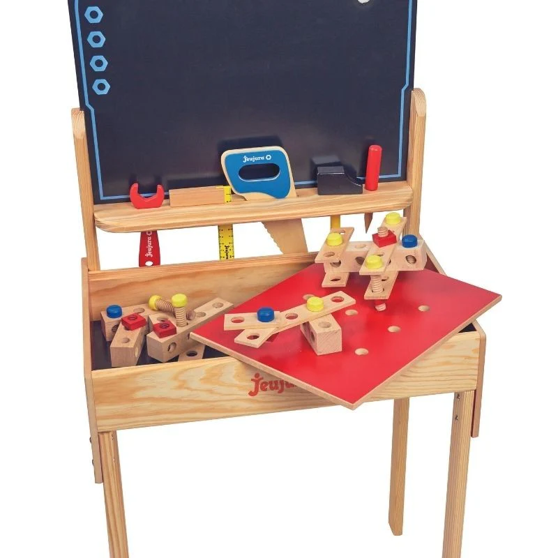 Pas de chichi, cet établi en bois est autant réservé pour les filles que pour les garçons, apprendre par la pratique et le jeu, il n’y a rien de mieux pour votre loulou !