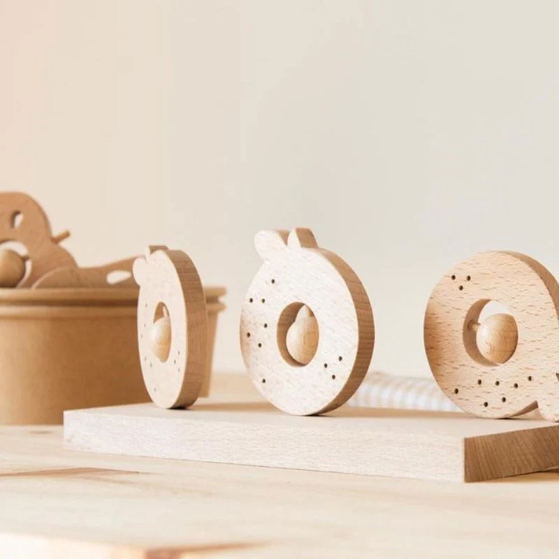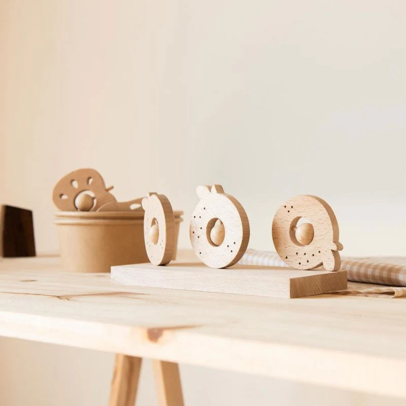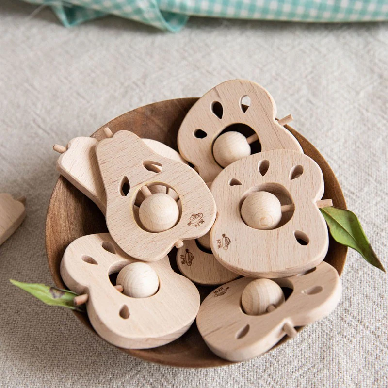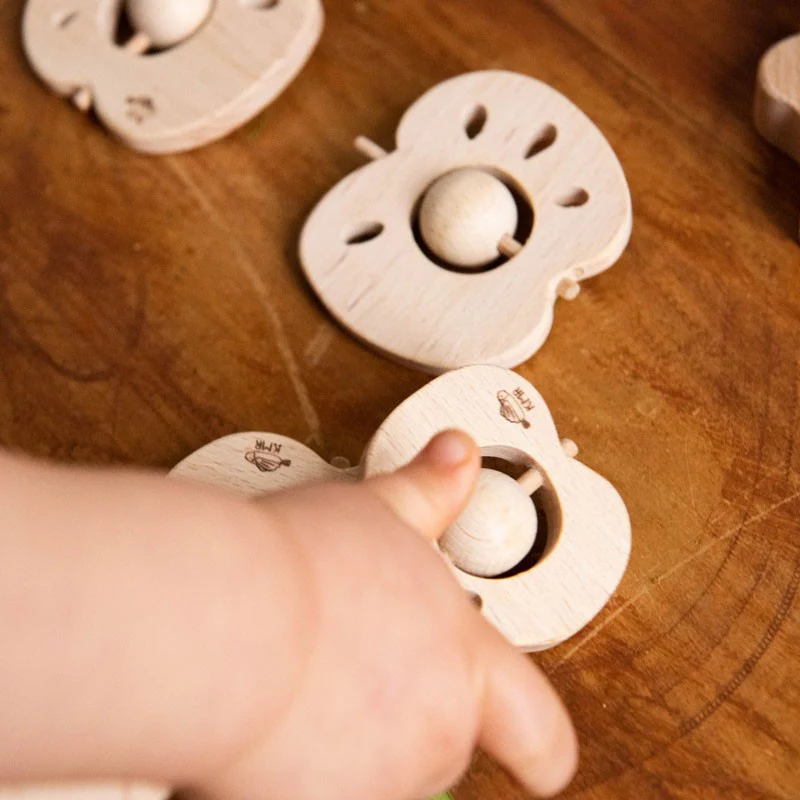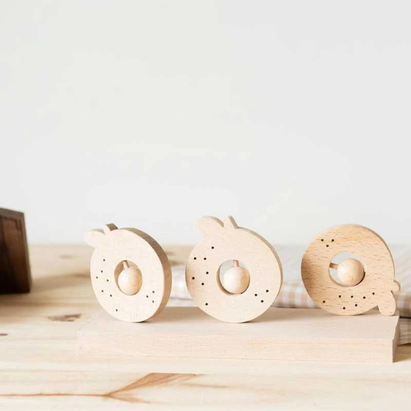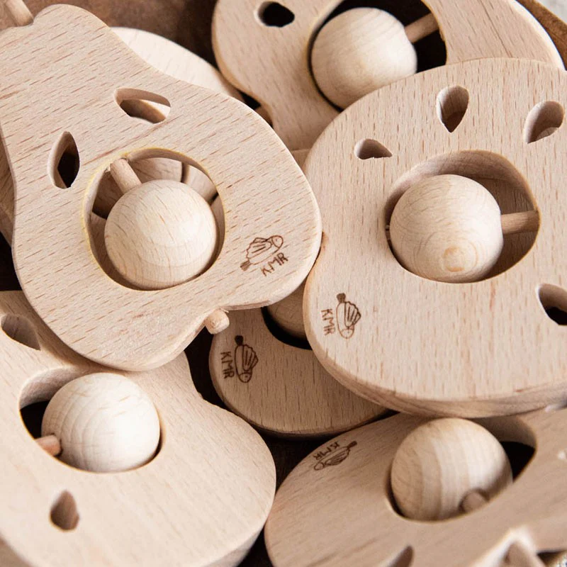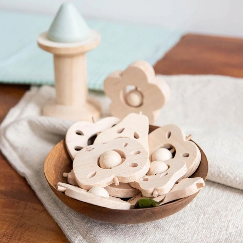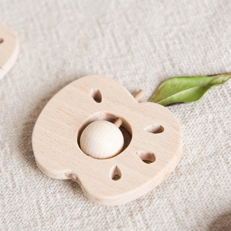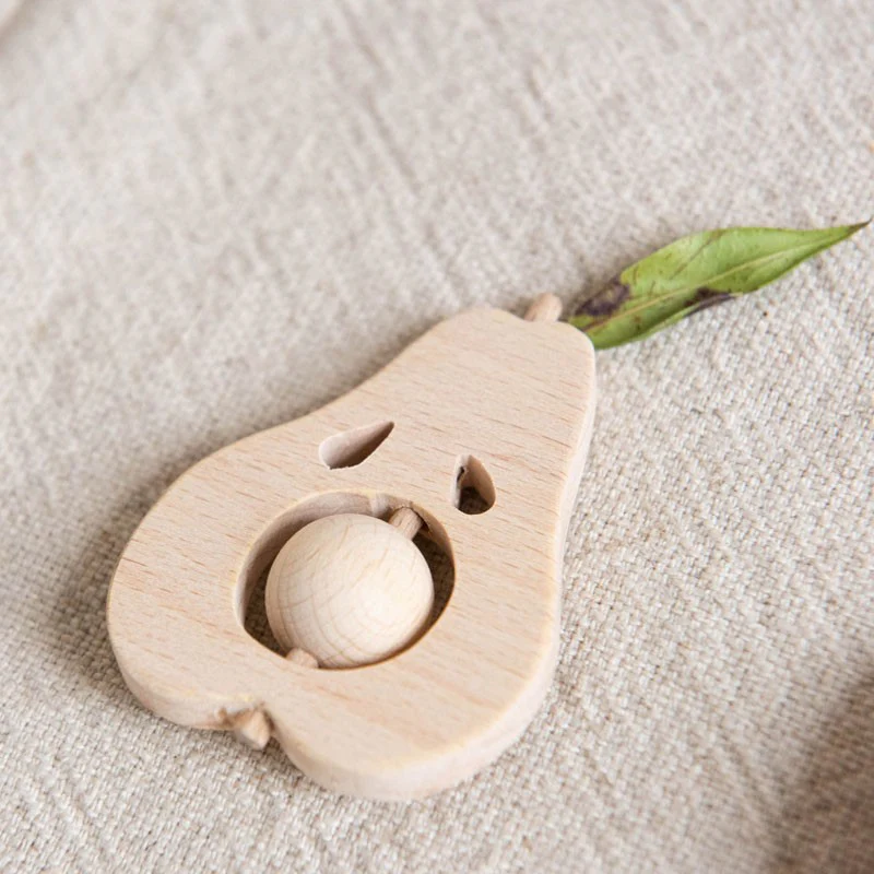 Hochet Pomme et Poire en bois Hêtre au choix.