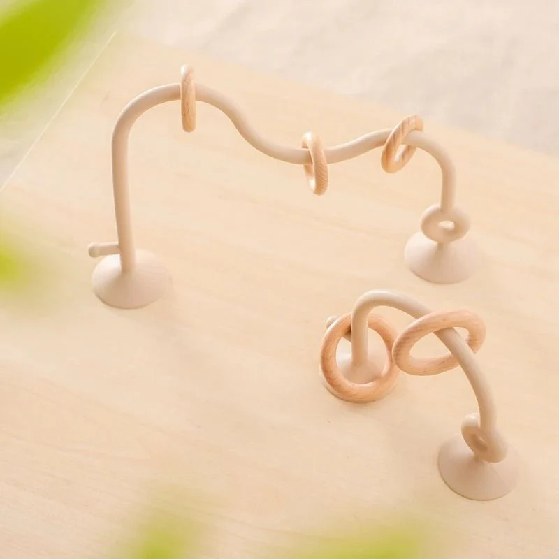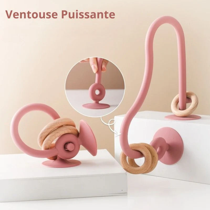 Ce labyrinthe en silicone est spécialement conçu pour les tout-petits de 0 à 36 mois, parfait pour éveiller leur curiosité et apaiser leurs besoins de dentition. Composé de deux parties flexibles en silicone souple et d’anneaux en bois de hêtre naturel, il allie douceur et sécurité. Chaque pièce est dotée de ventouses puissantes qui permettent de le fixer solidement sur presque toutes les surfaces lisses, pour des jeux en toute stabilité.