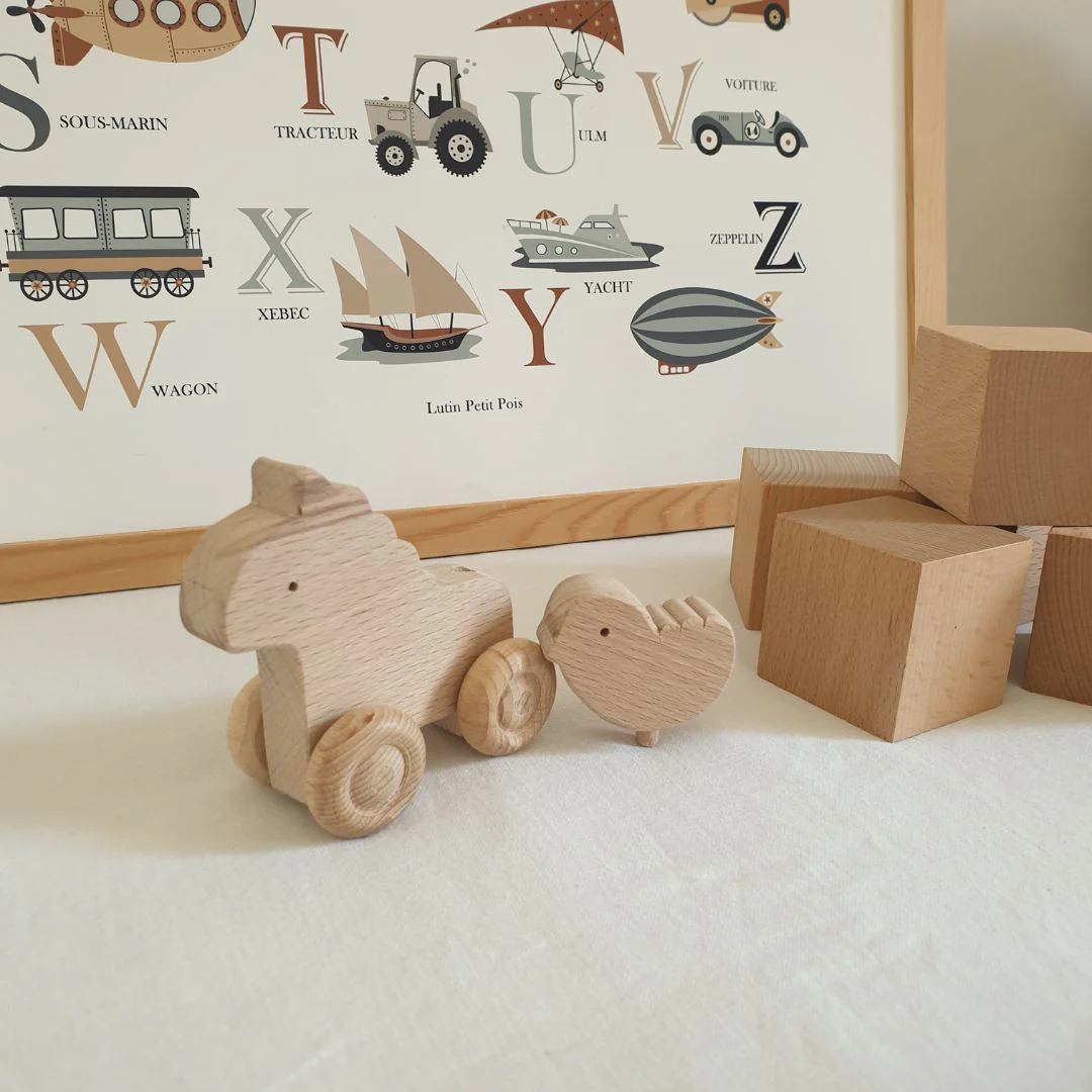 Magnifique Cheval de bois et son oiseau assemblable sur le dos en bois de Hêtre, qui encourage la créativité, l’imagination et le naturel pour grandir et apprendre simplement. Fabriqué à la main dans le nord de la France Naturel & sans plastique.